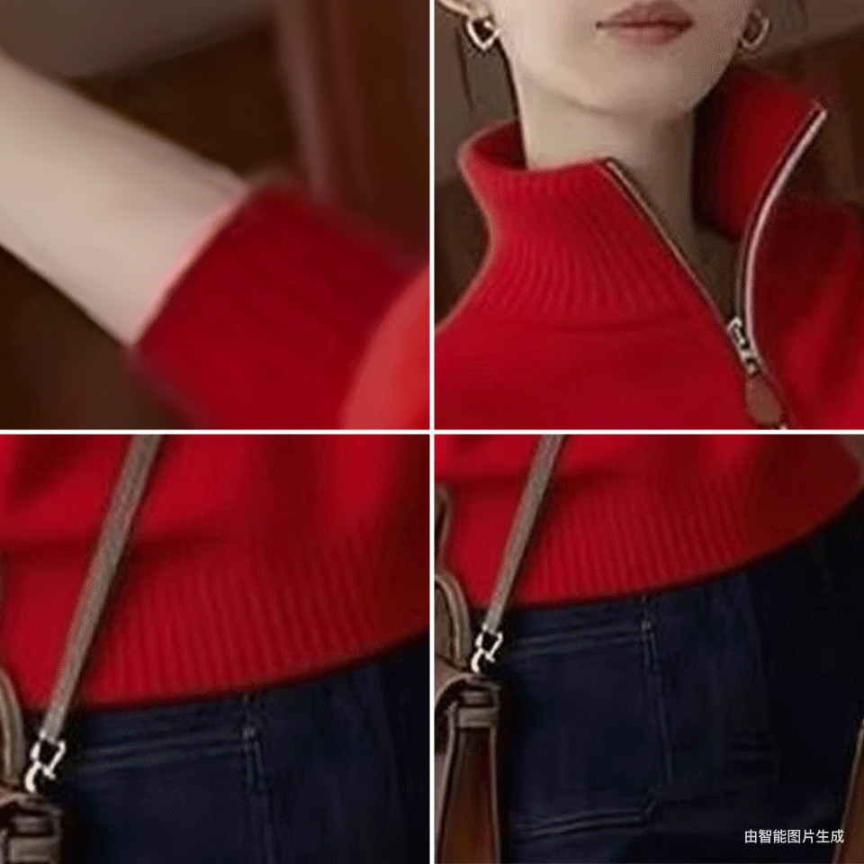 小众高级感半拉链毛衣女高领秋冬新款软糯针织衫洋气百搭短款上衣