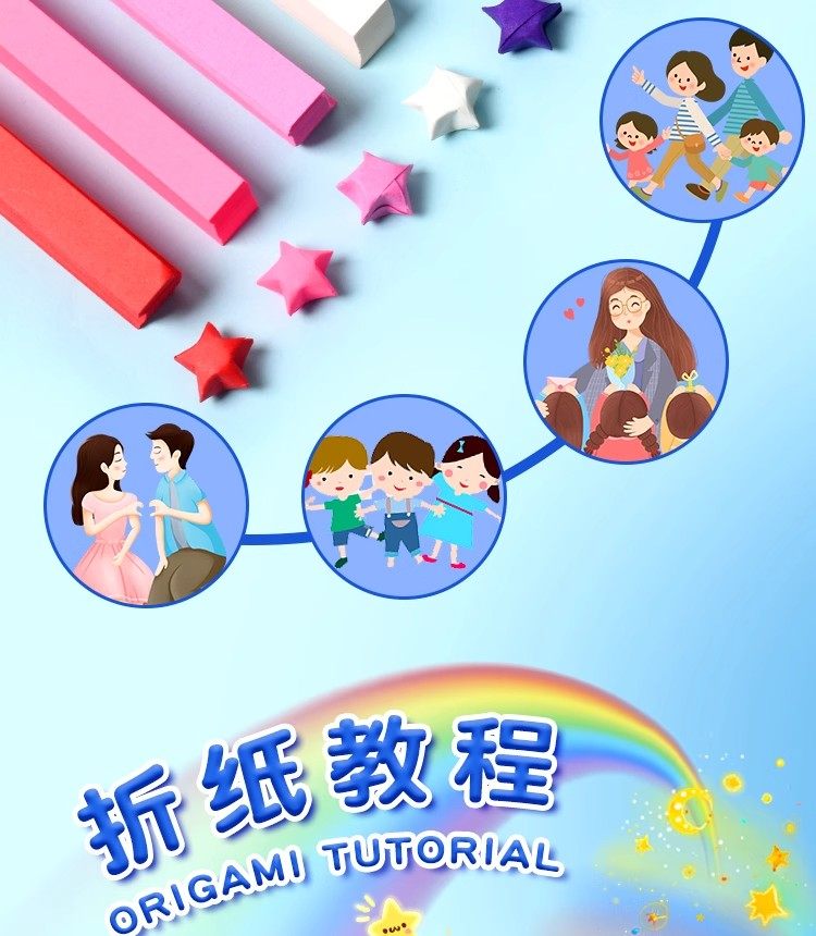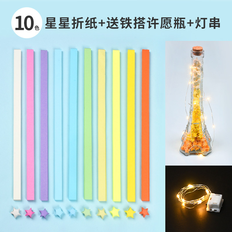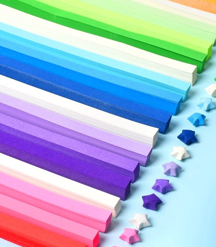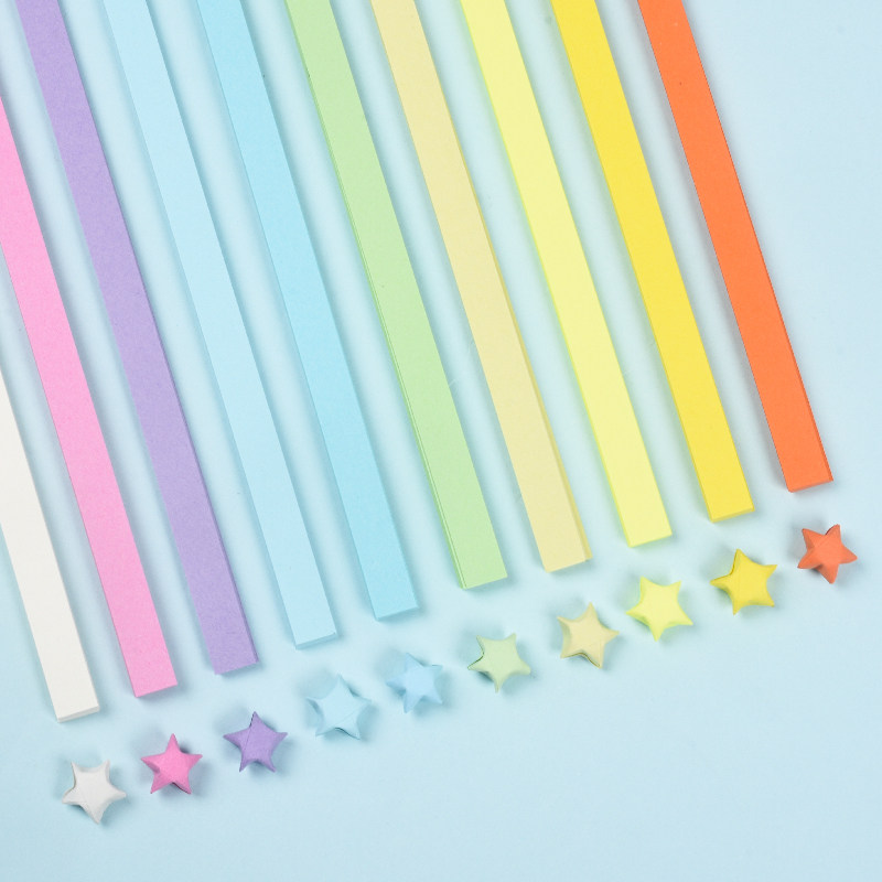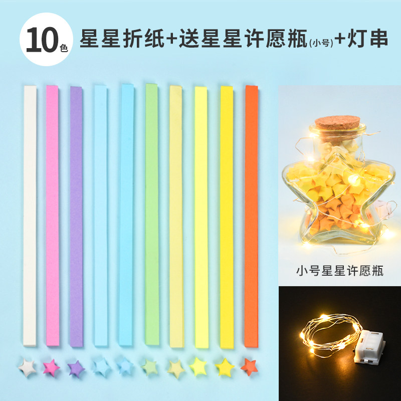 星星折纸渐变色幸运星彩色纸条小朋友编五角星许愿瓶玻璃瓶手工支