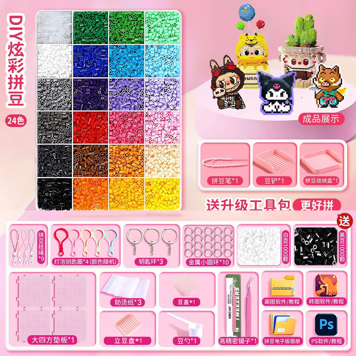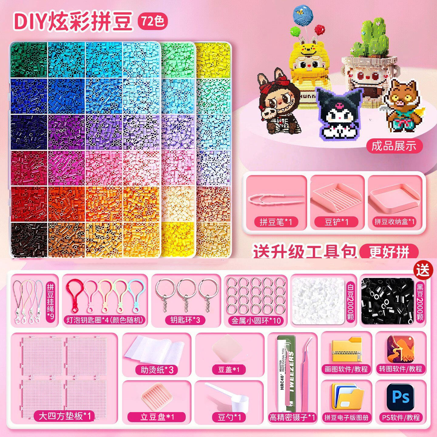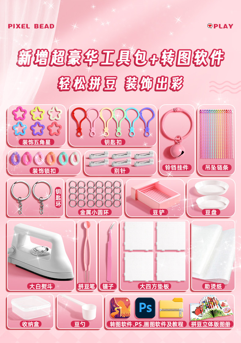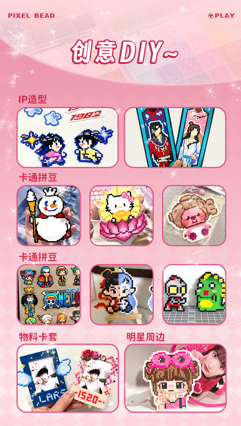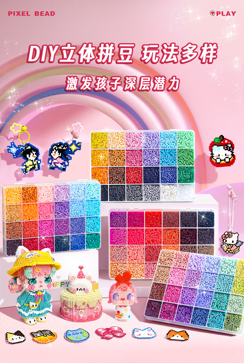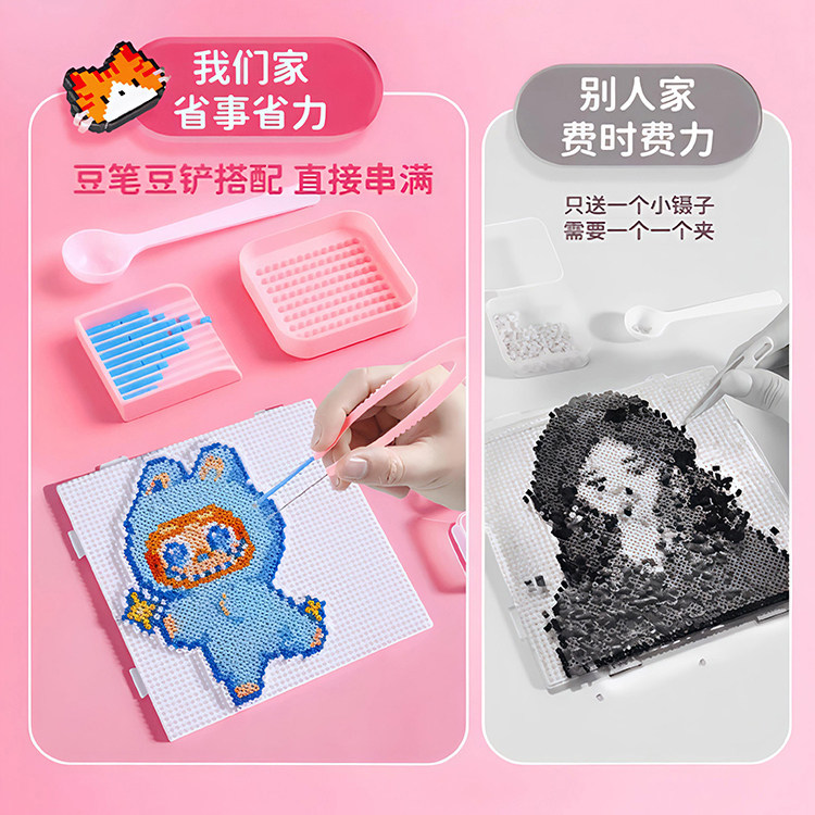 拼豆豆手工diy材料包全套工具立体融合豆女孩网红玩具套装全色系