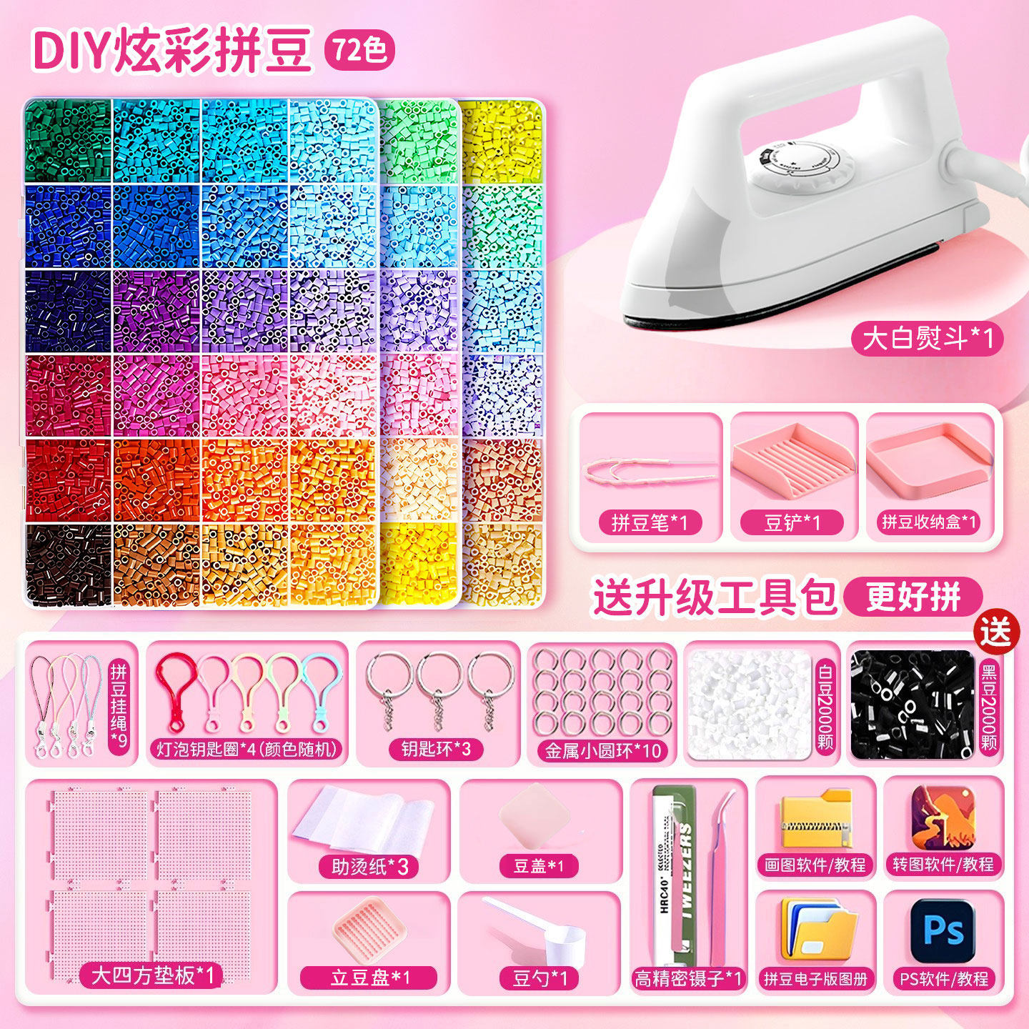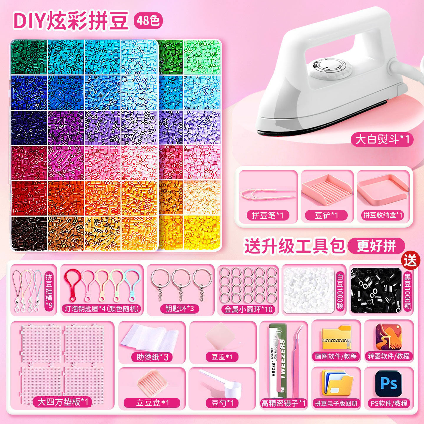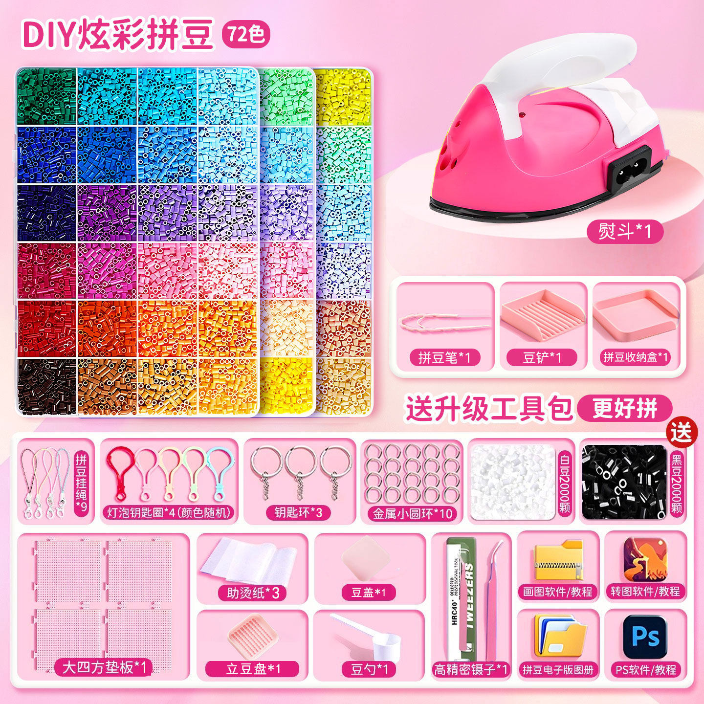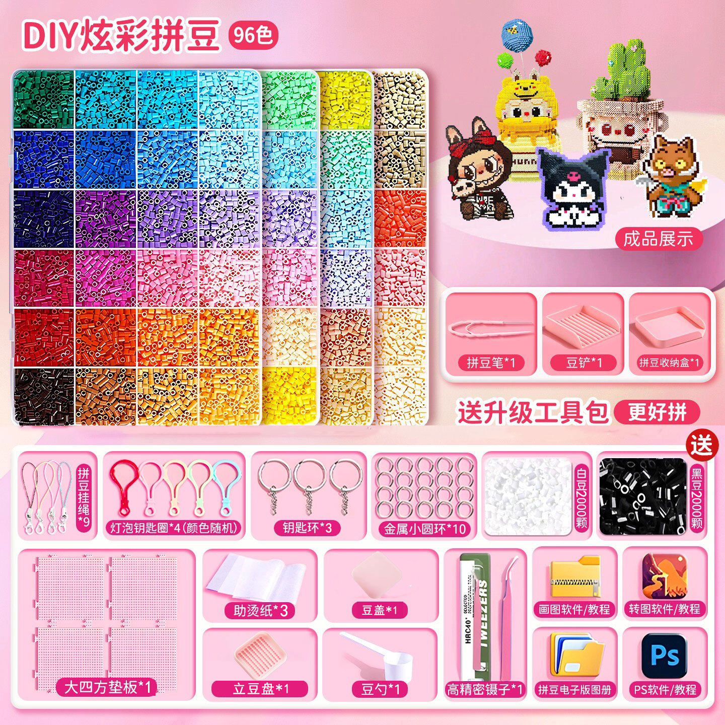 拼豆豆手工diy材料包全套工具立体融合豆女孩网红玩具套装全色系