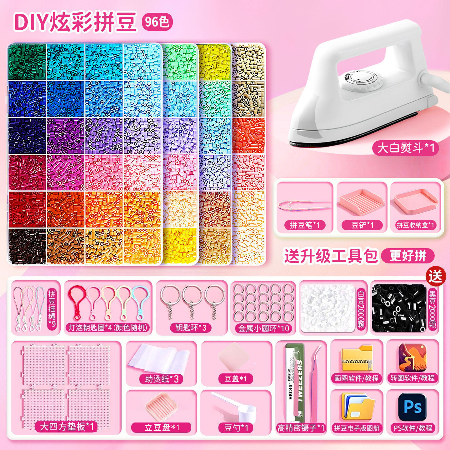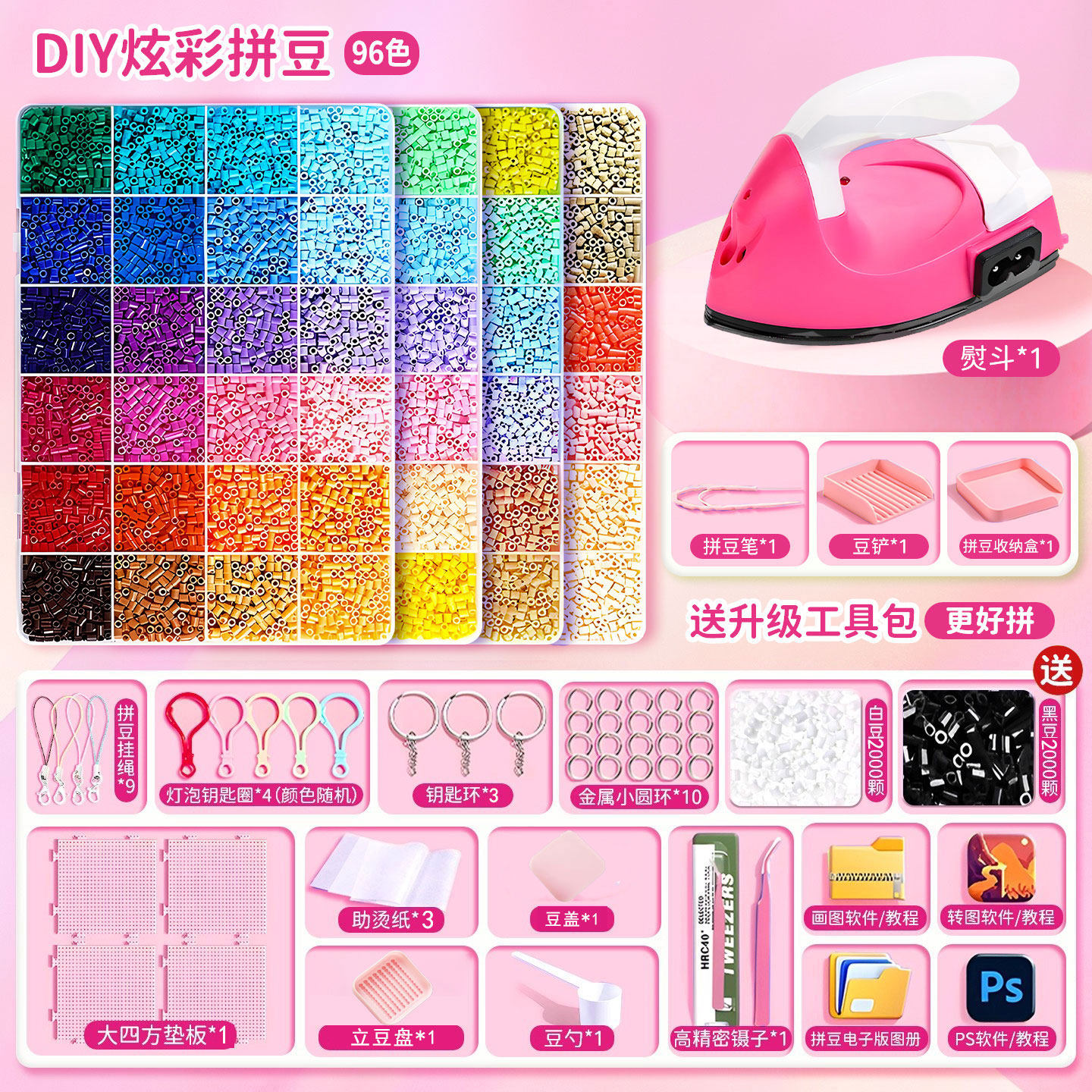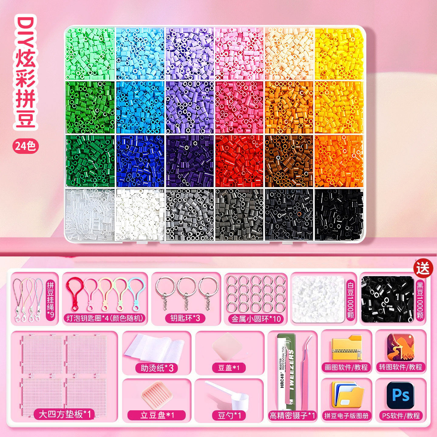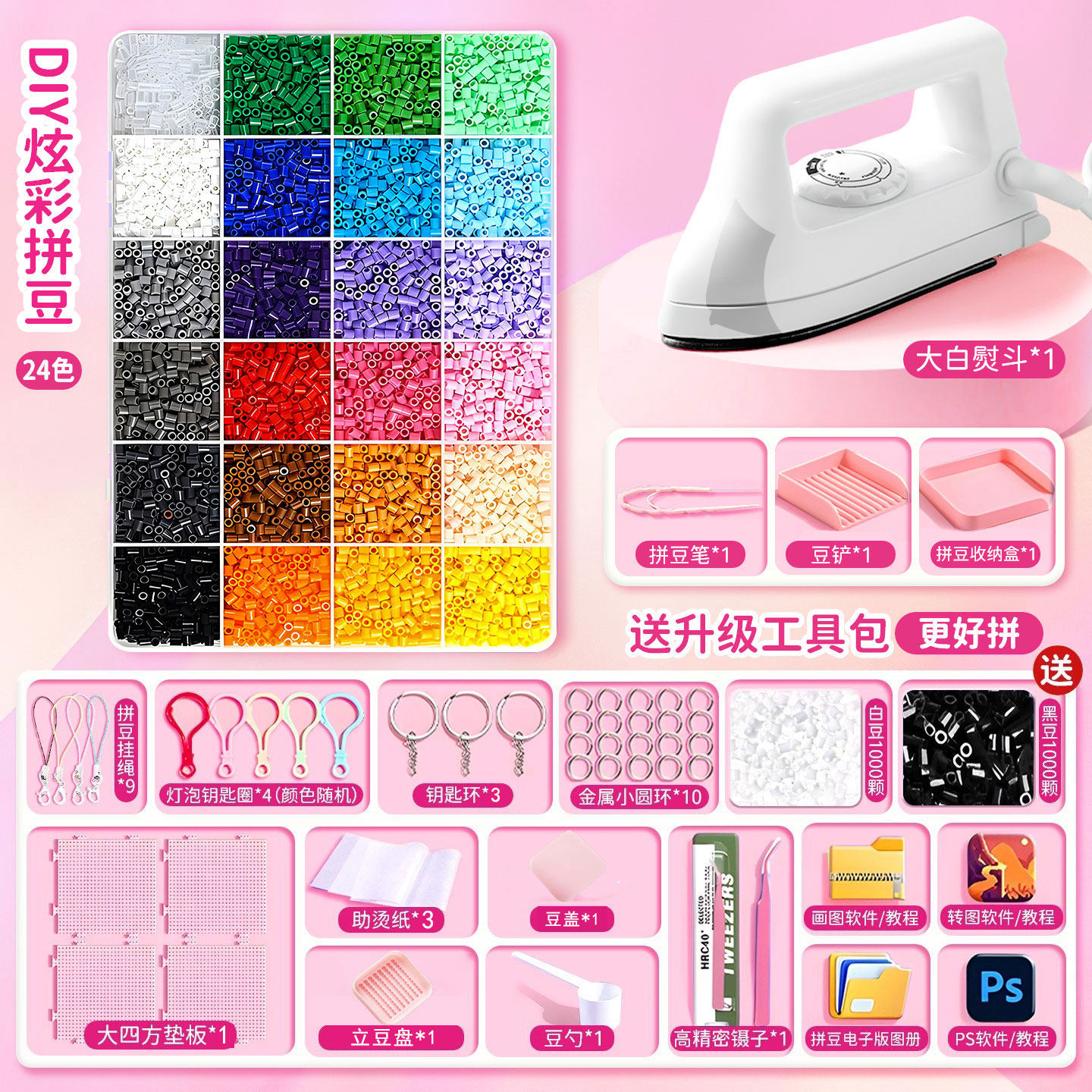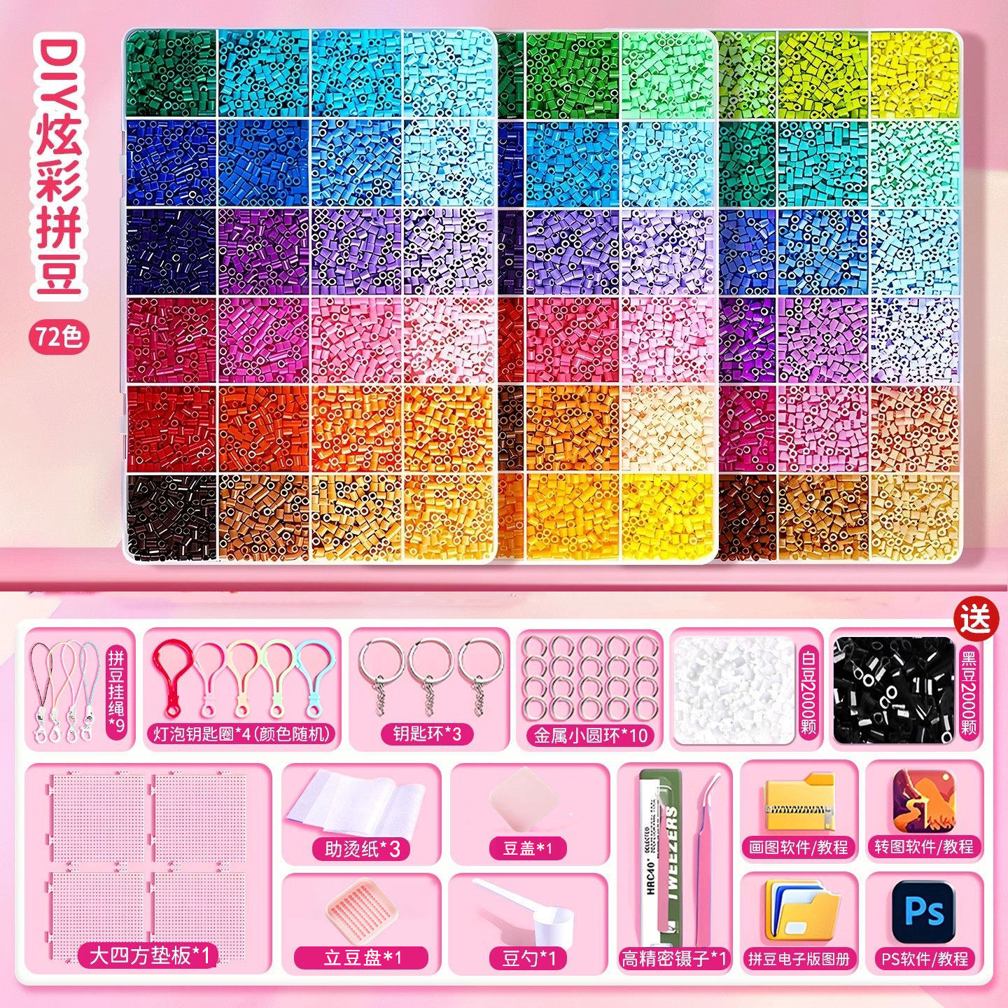 拼豆豆手工diy材料包全套工具立体融合豆女孩网红玩具套装全色系