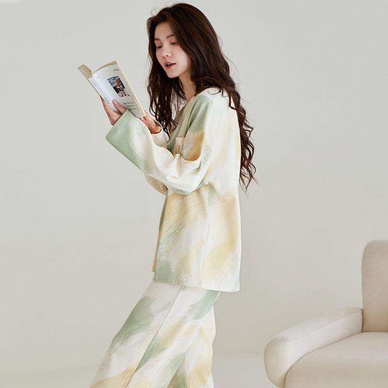 啄木鸟睡衣女士春秋季纯棉长袖韩版甜美可外穿全棉家居服套装