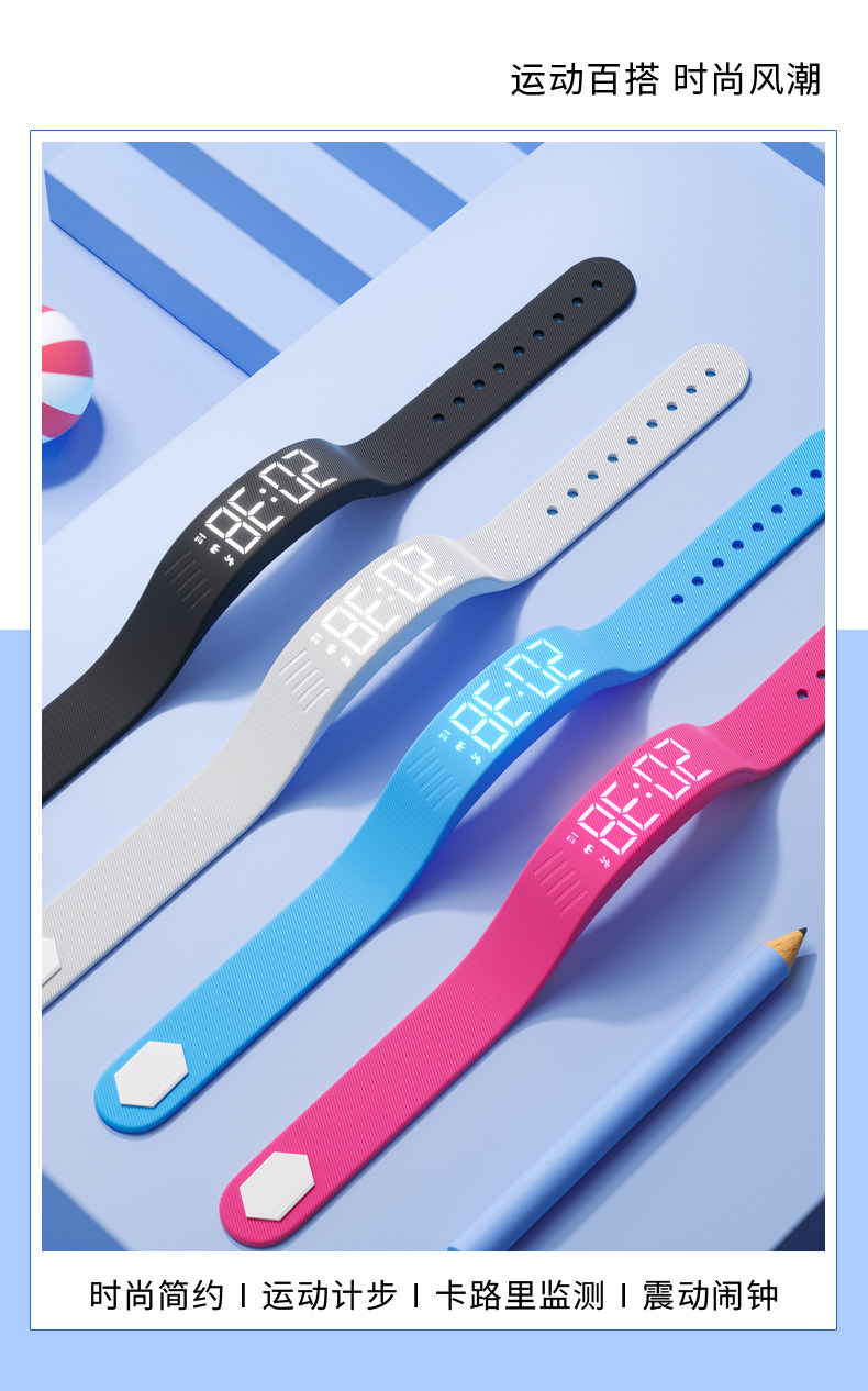 多功能智能手环男女中学生运动计步腕表防水震动闹钟提醒电子手表
