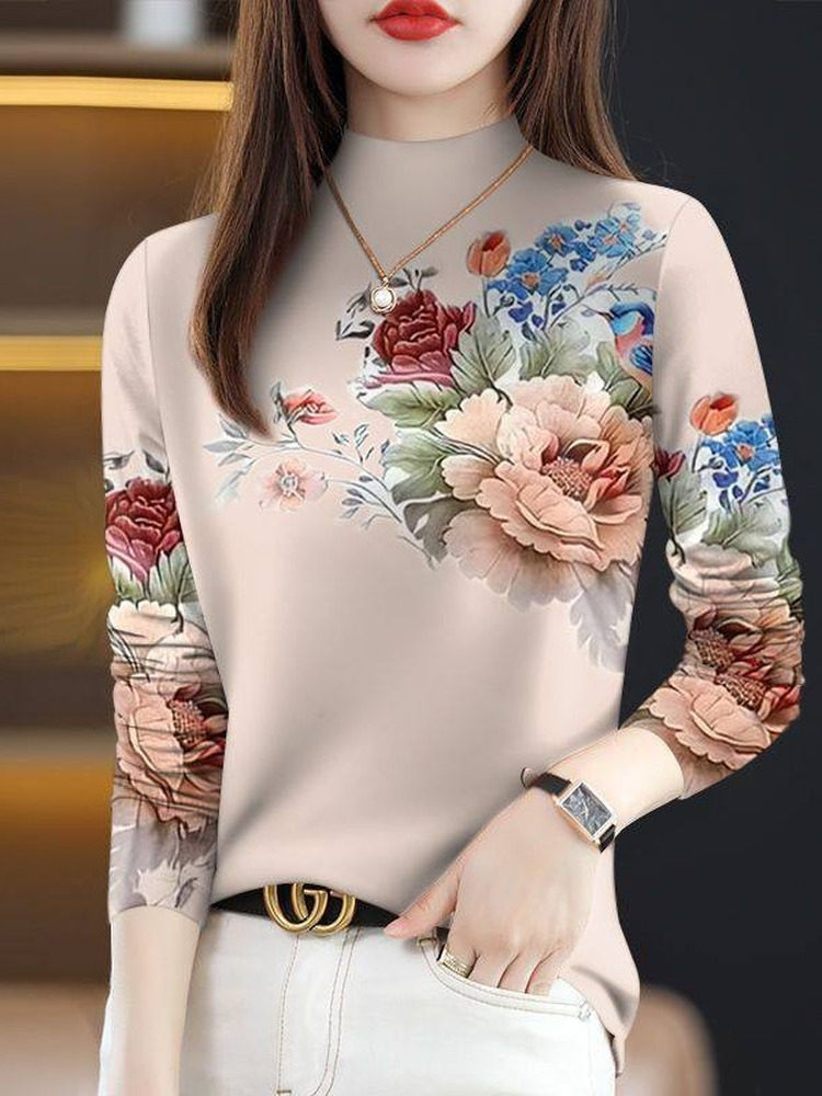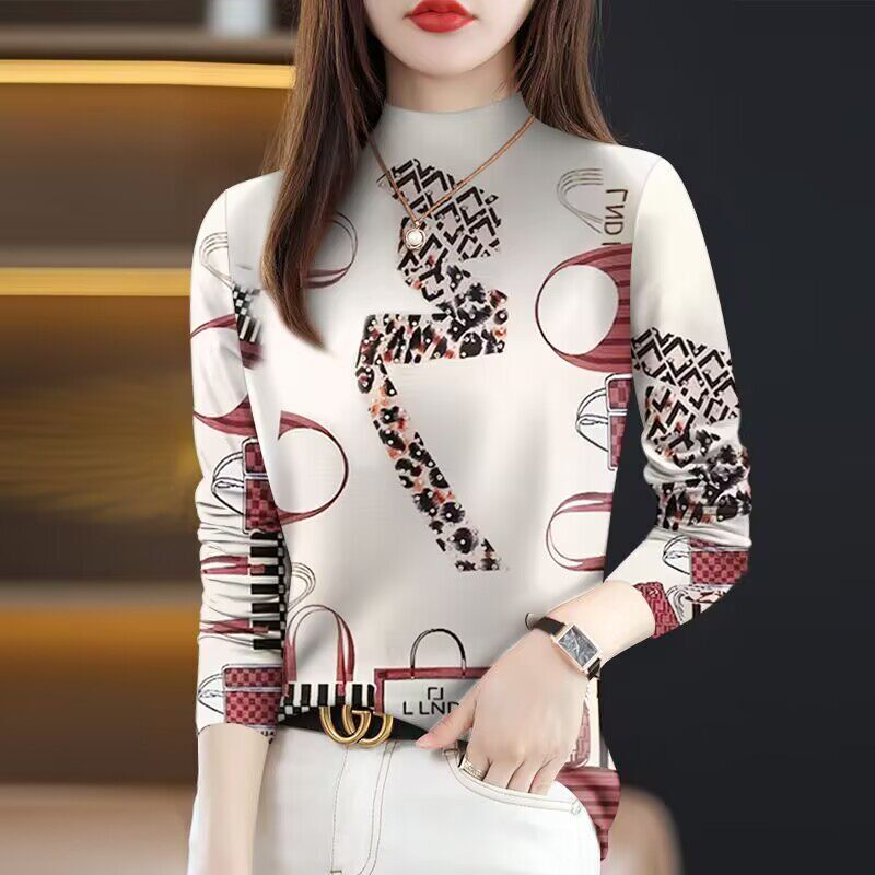 清仓捡漏~高档时尚女装2026春季新款减龄长袖半高领T恤女上衣潮