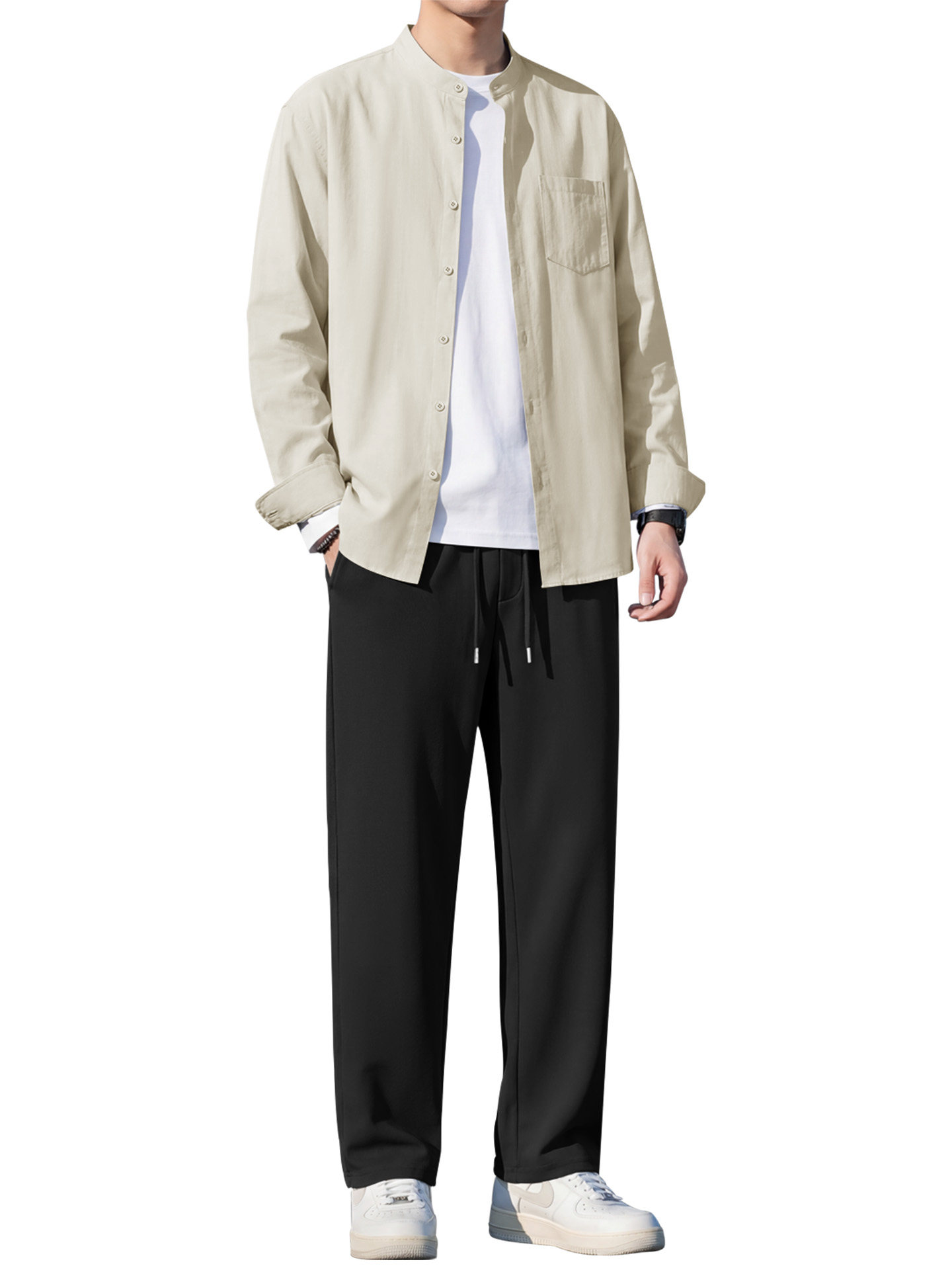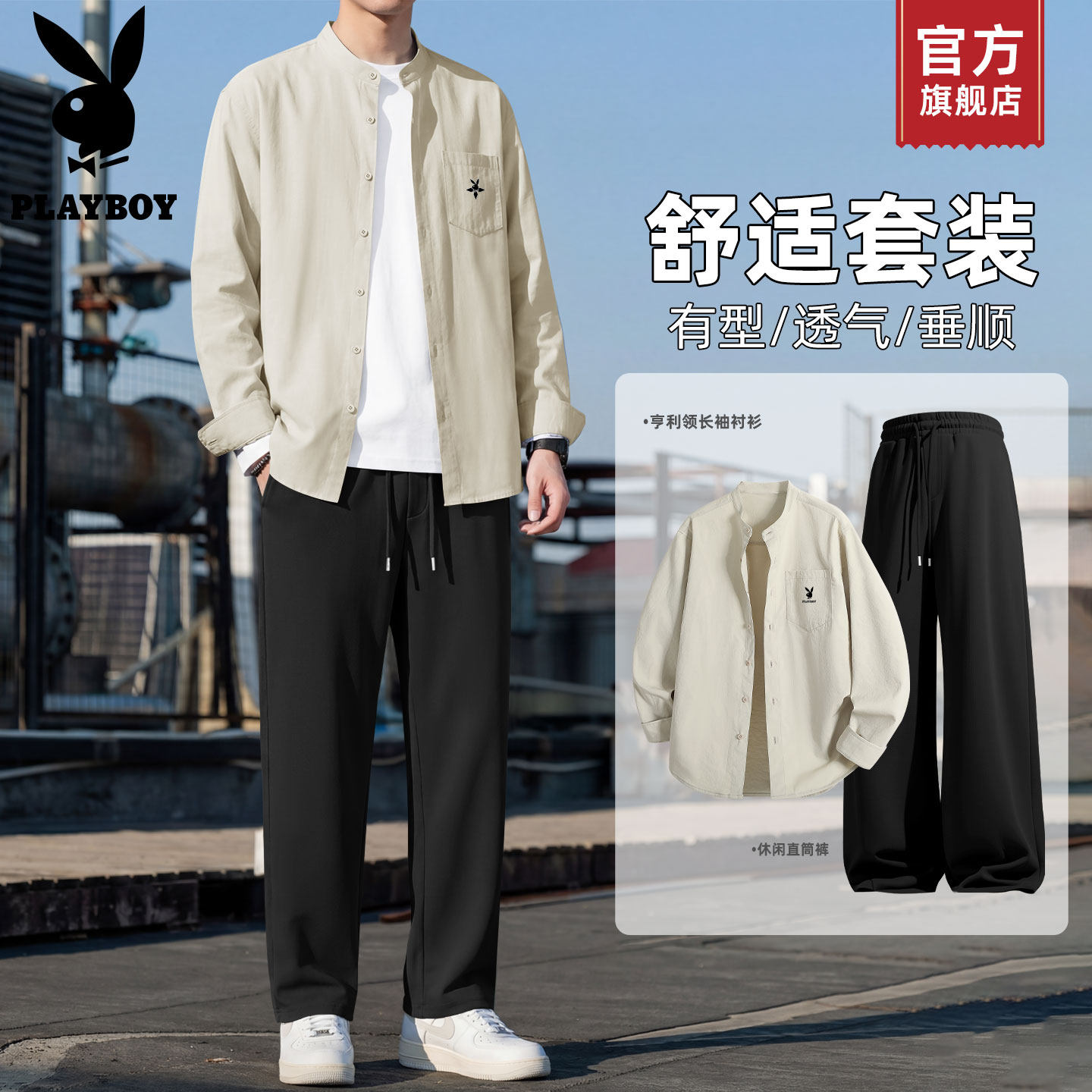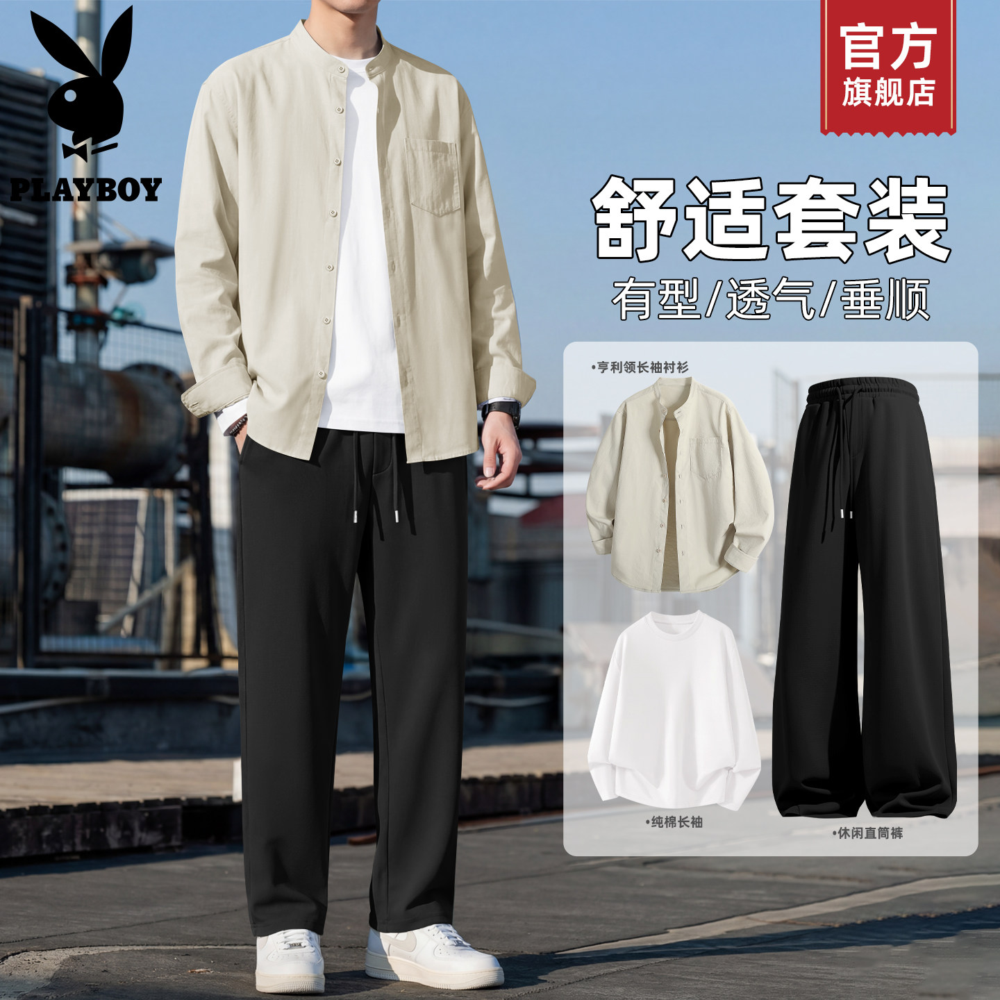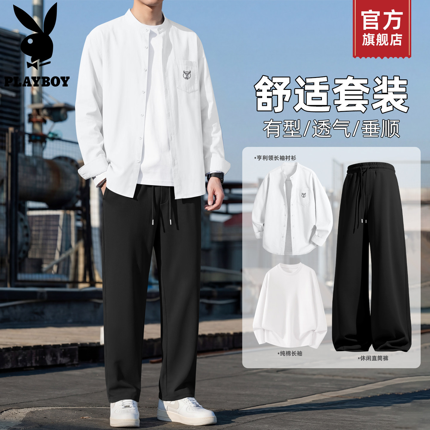 花花公子潮流休闲套装男春季立领长袖衬衫男士穿搭一整套高级感Y