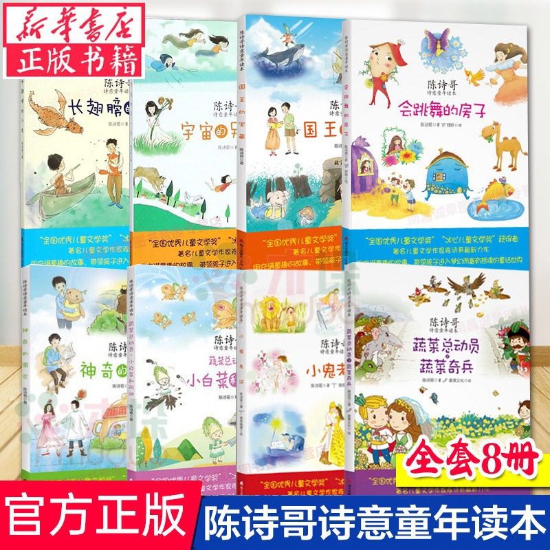 全套8册陈诗哥诗意童年读本 会跳舞的房子+长翅膀的小龙宇宙的另一边神奇的 小白菜和阿湫国王的宝藏蔬菜奇兵小鬼考试陈诗歌的书