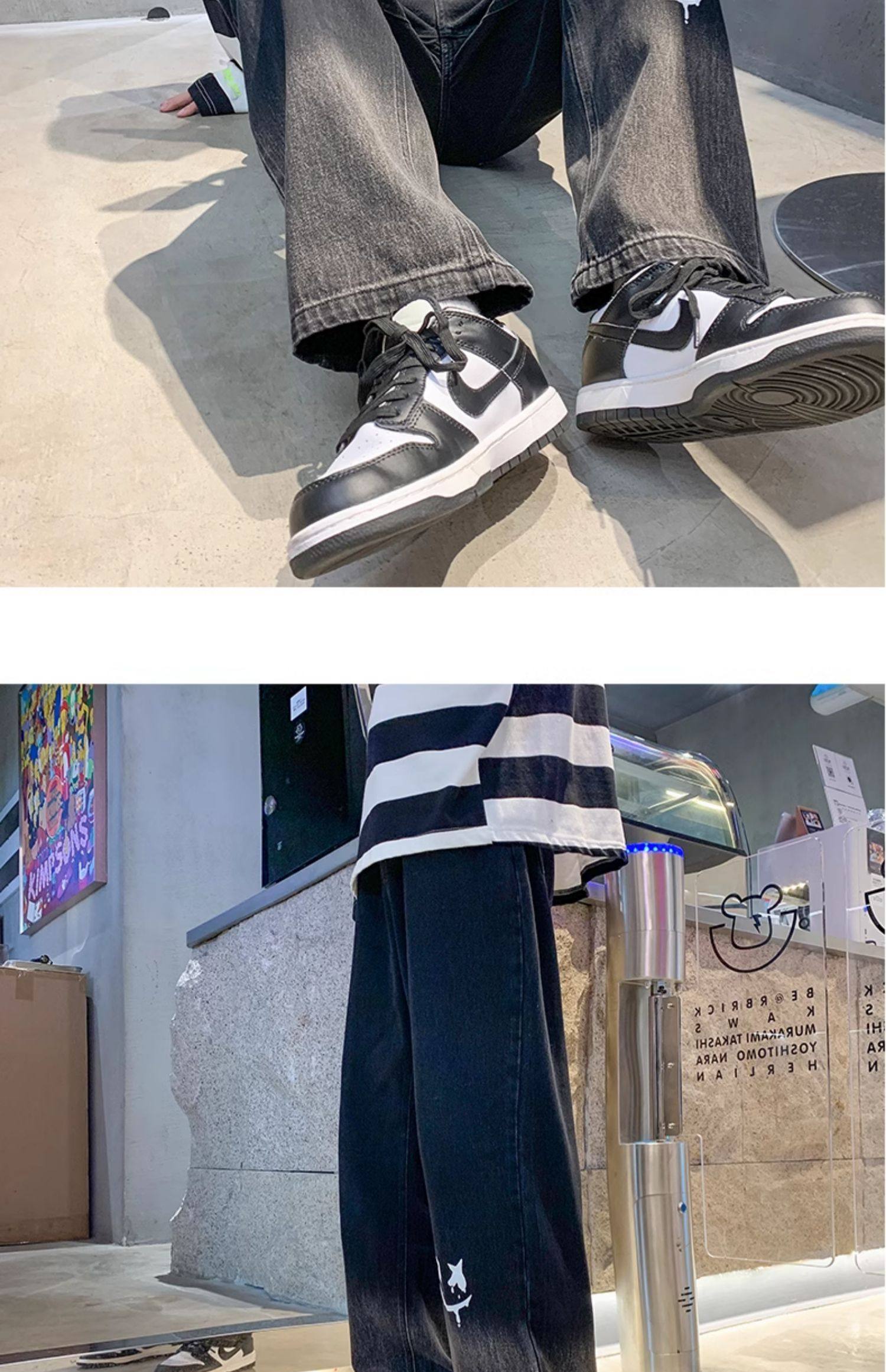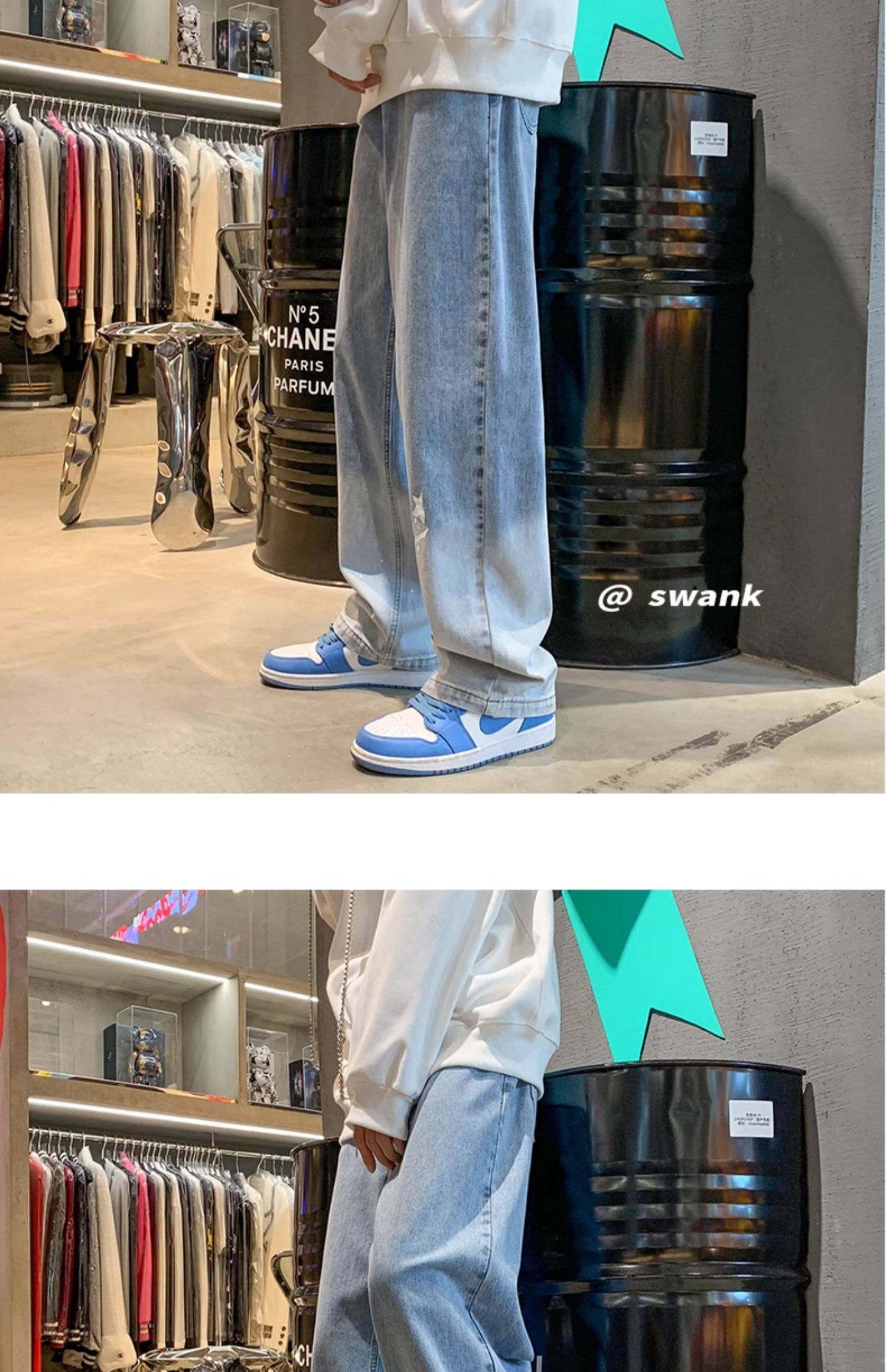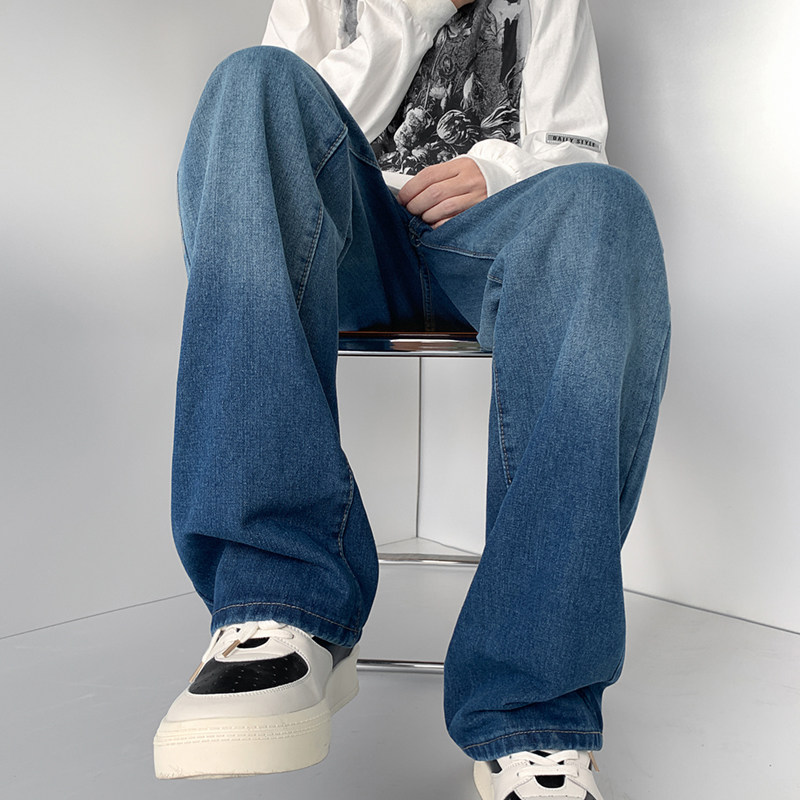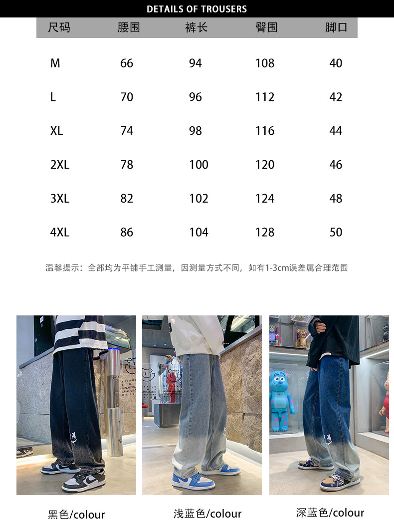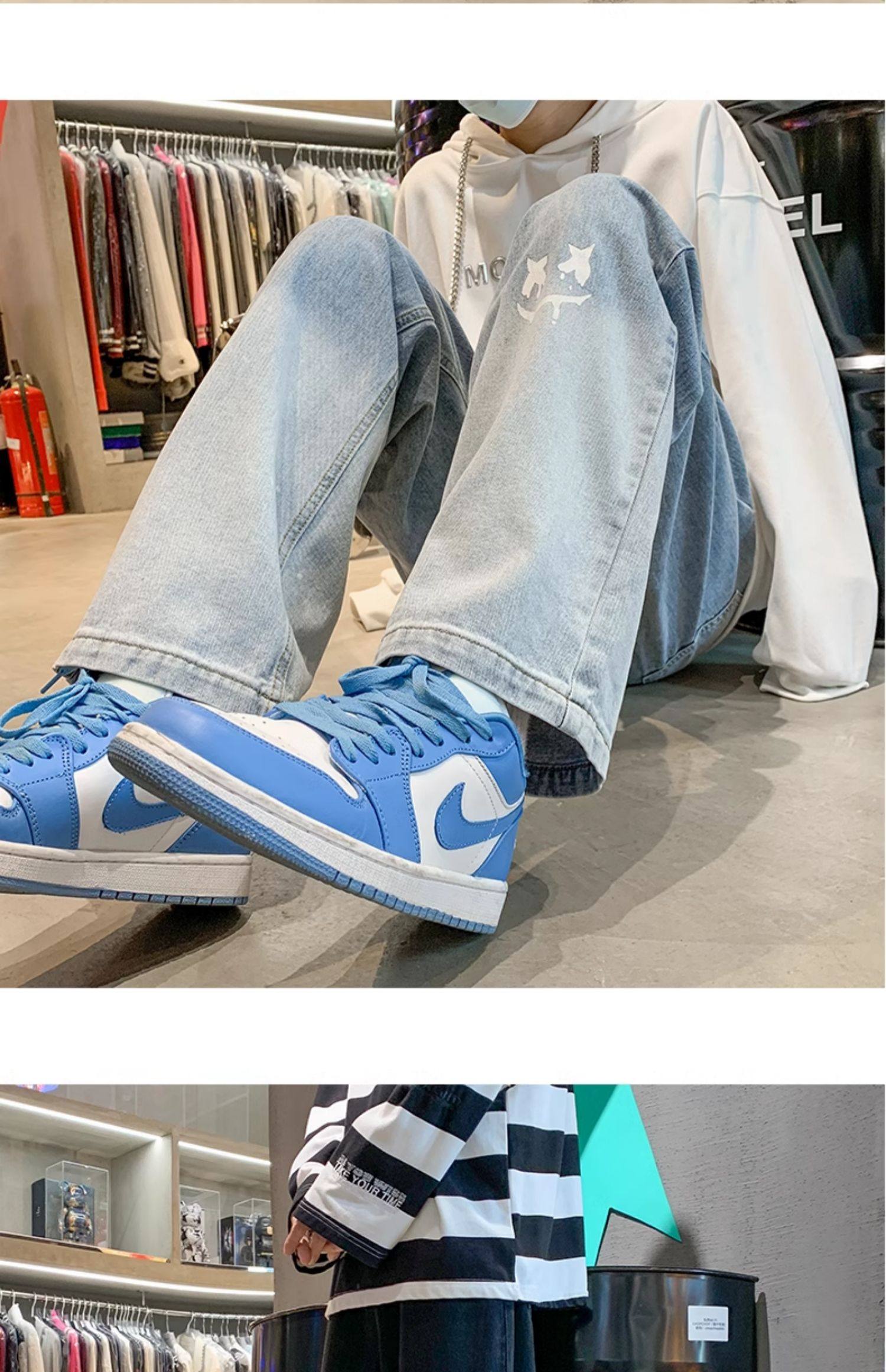 美式男款裤子潮牌新款秋季笑脸涂鸦水洗复古牛仔裤宽松直筒阔腿裤