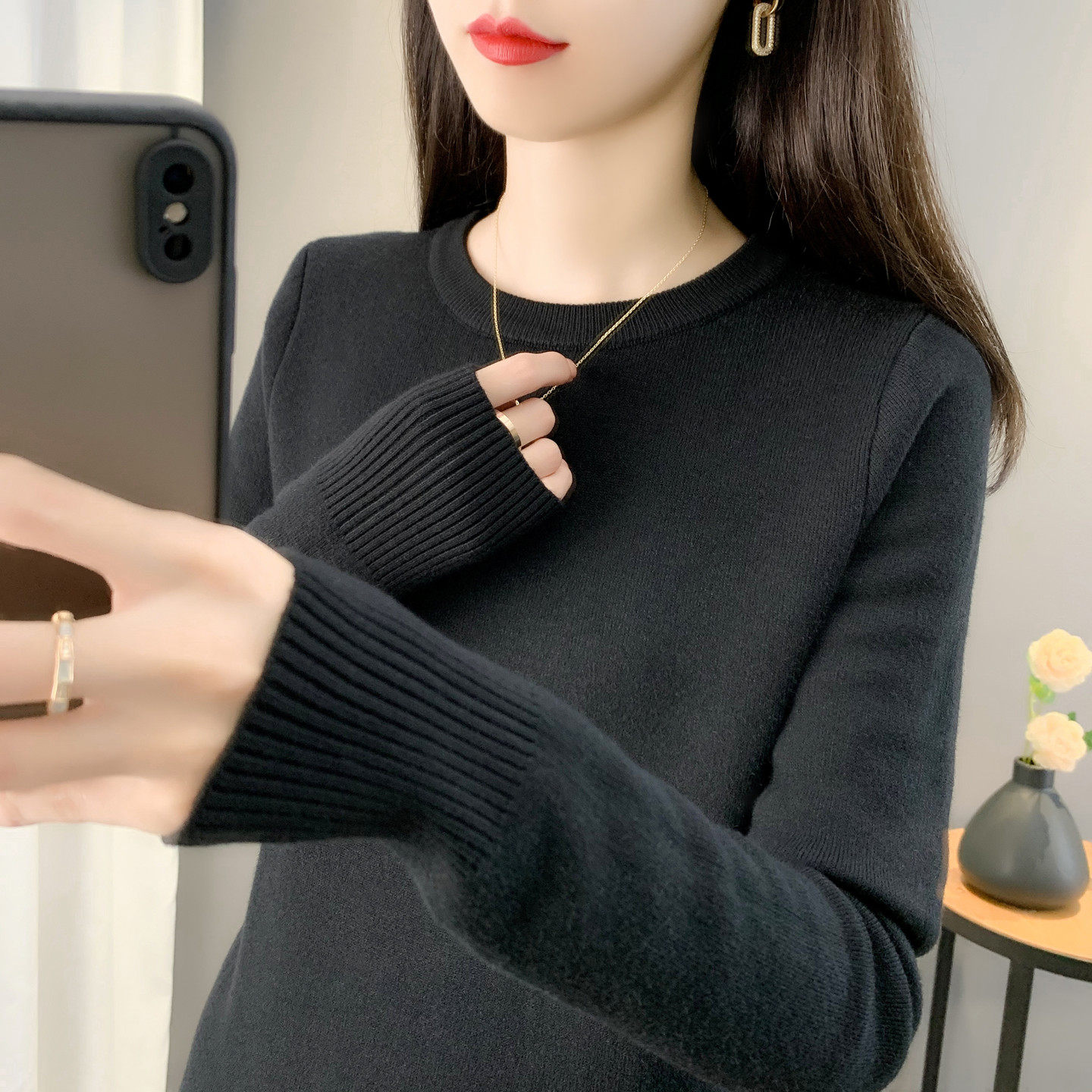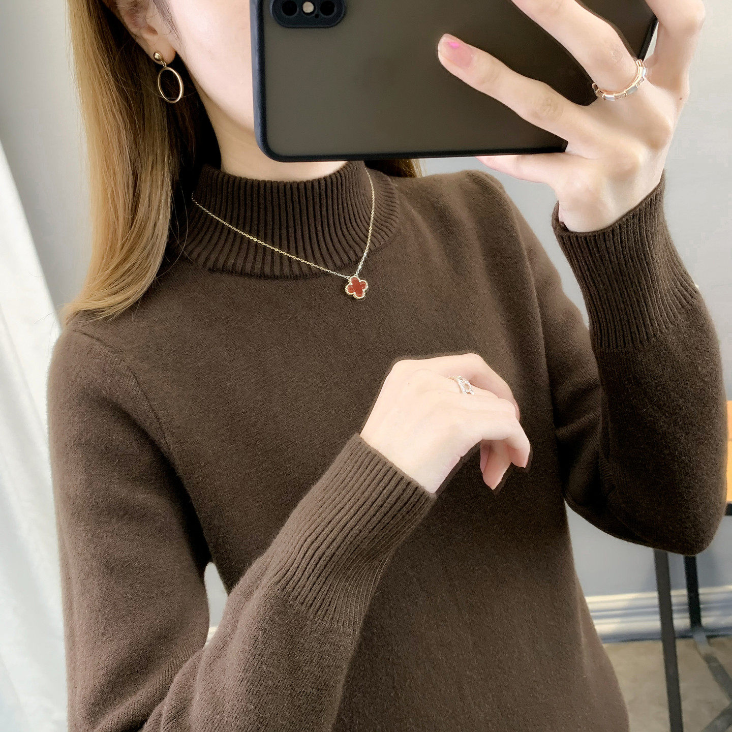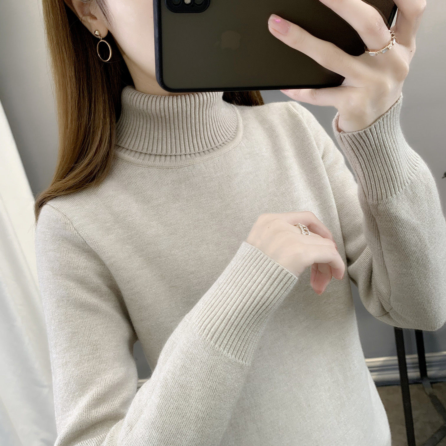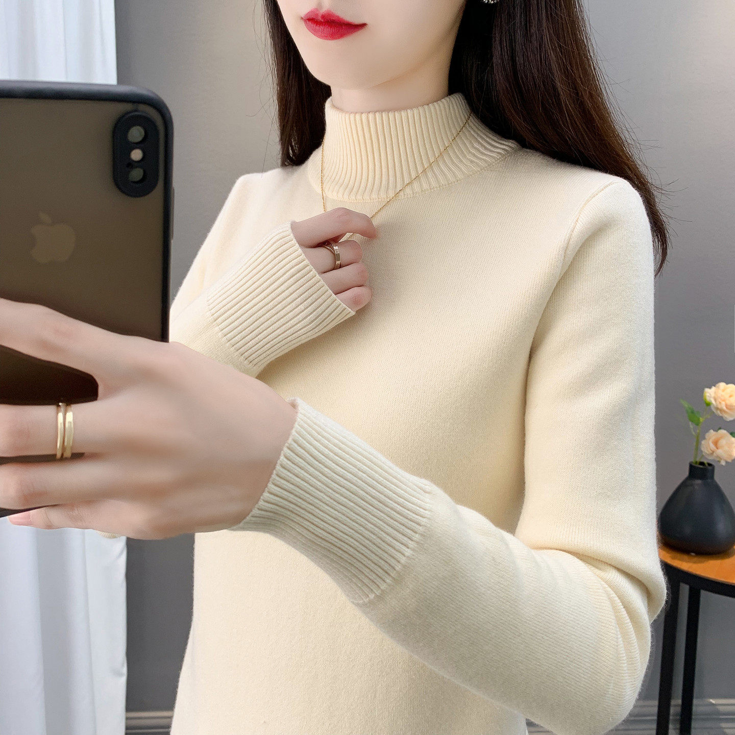 秋冬加绒毛衣女加厚一体绒内搭大码半高领套头打底针织衫保暖上衣