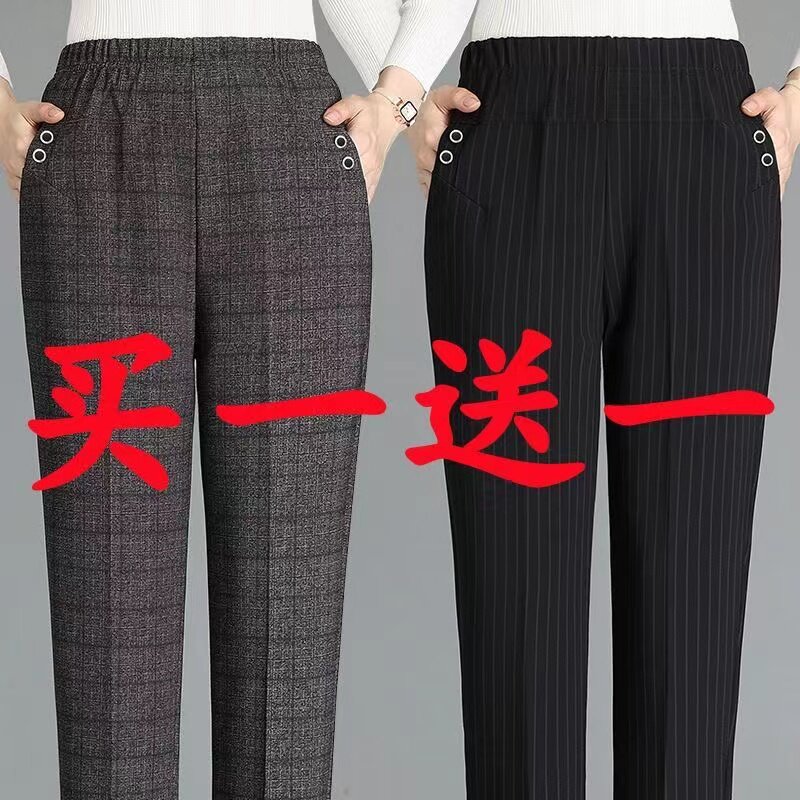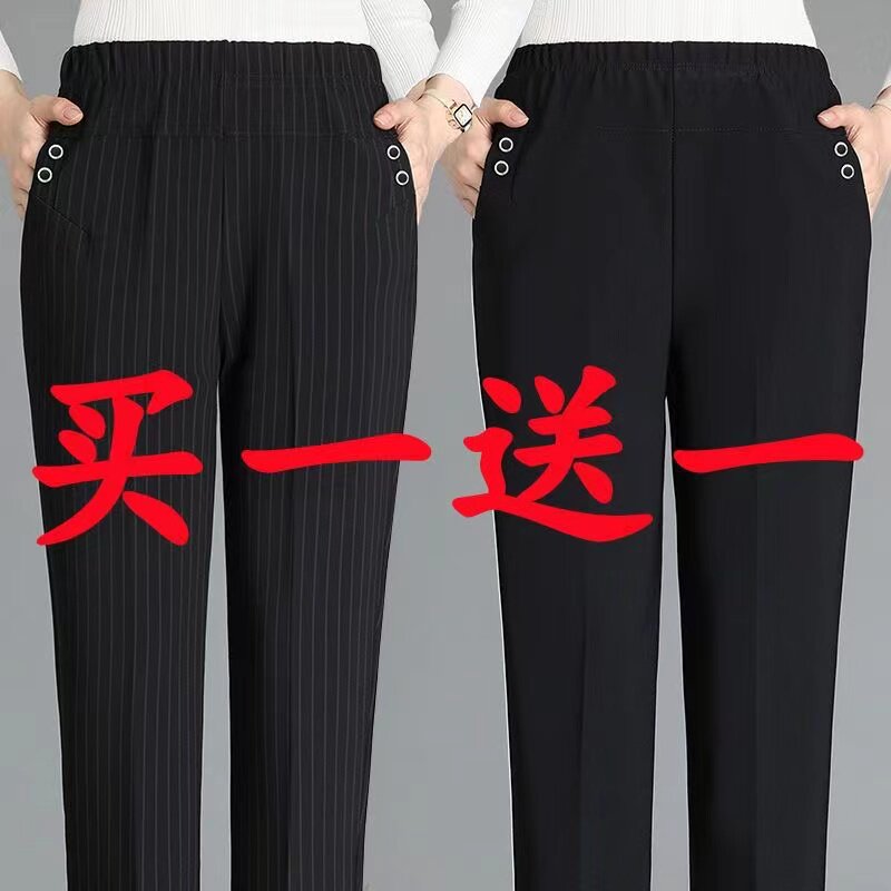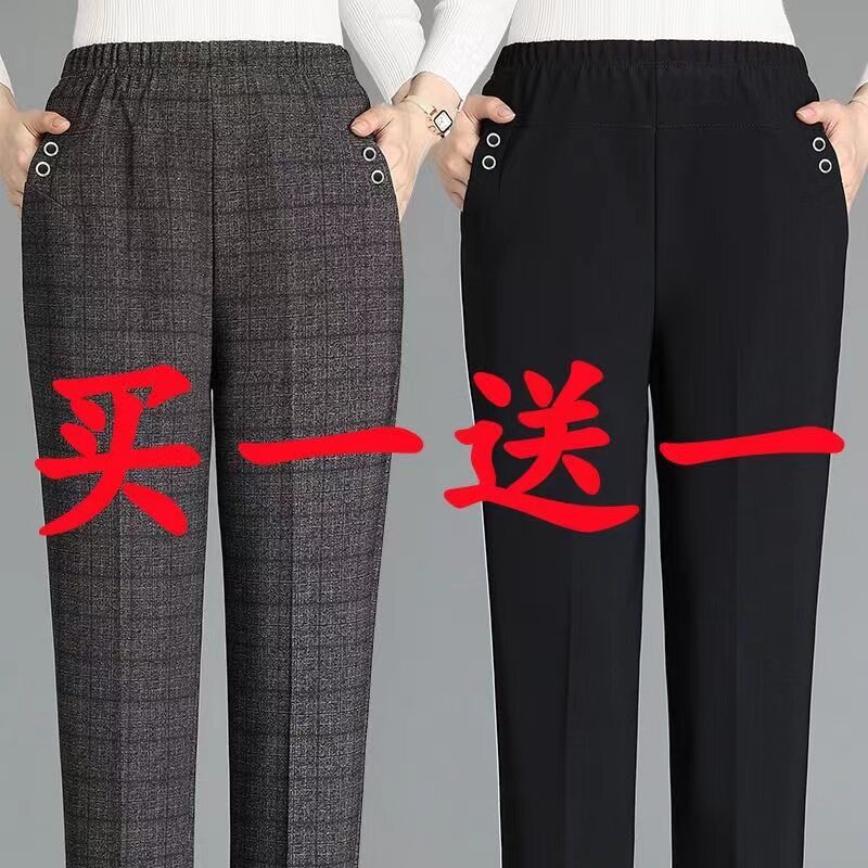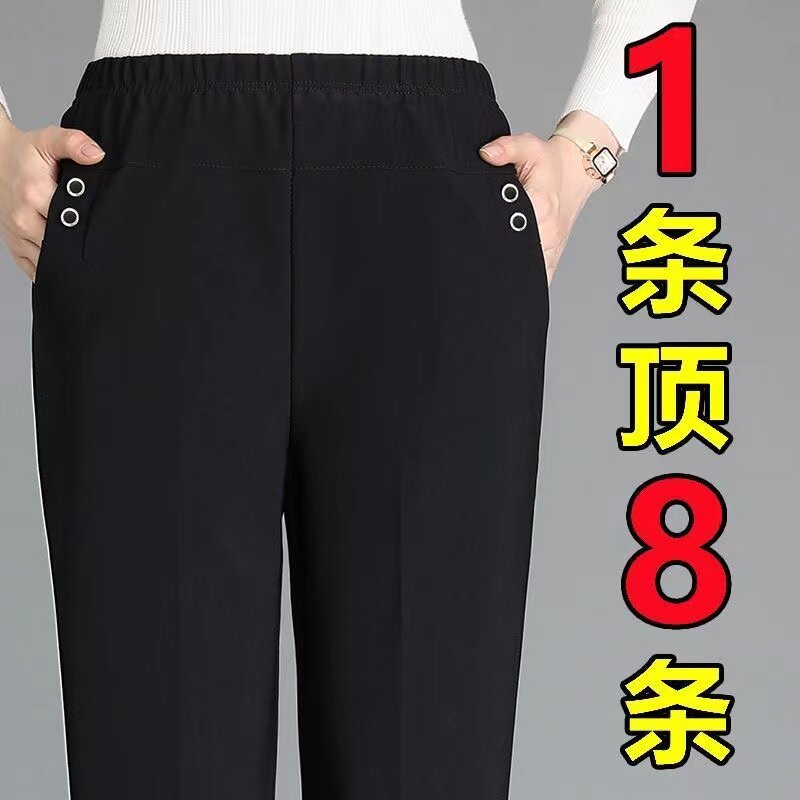 中老年妈妈裤子女春夏新款大码弹力松紧宽松直筒休闲裤老人奶奶裤