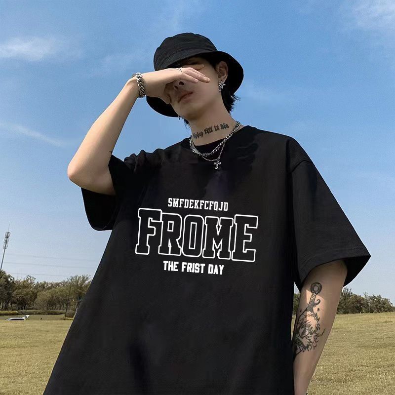 潮牌100%纯棉字母短袖T恤男士夏季宽松大码体恤痞帅美式情侣上衣