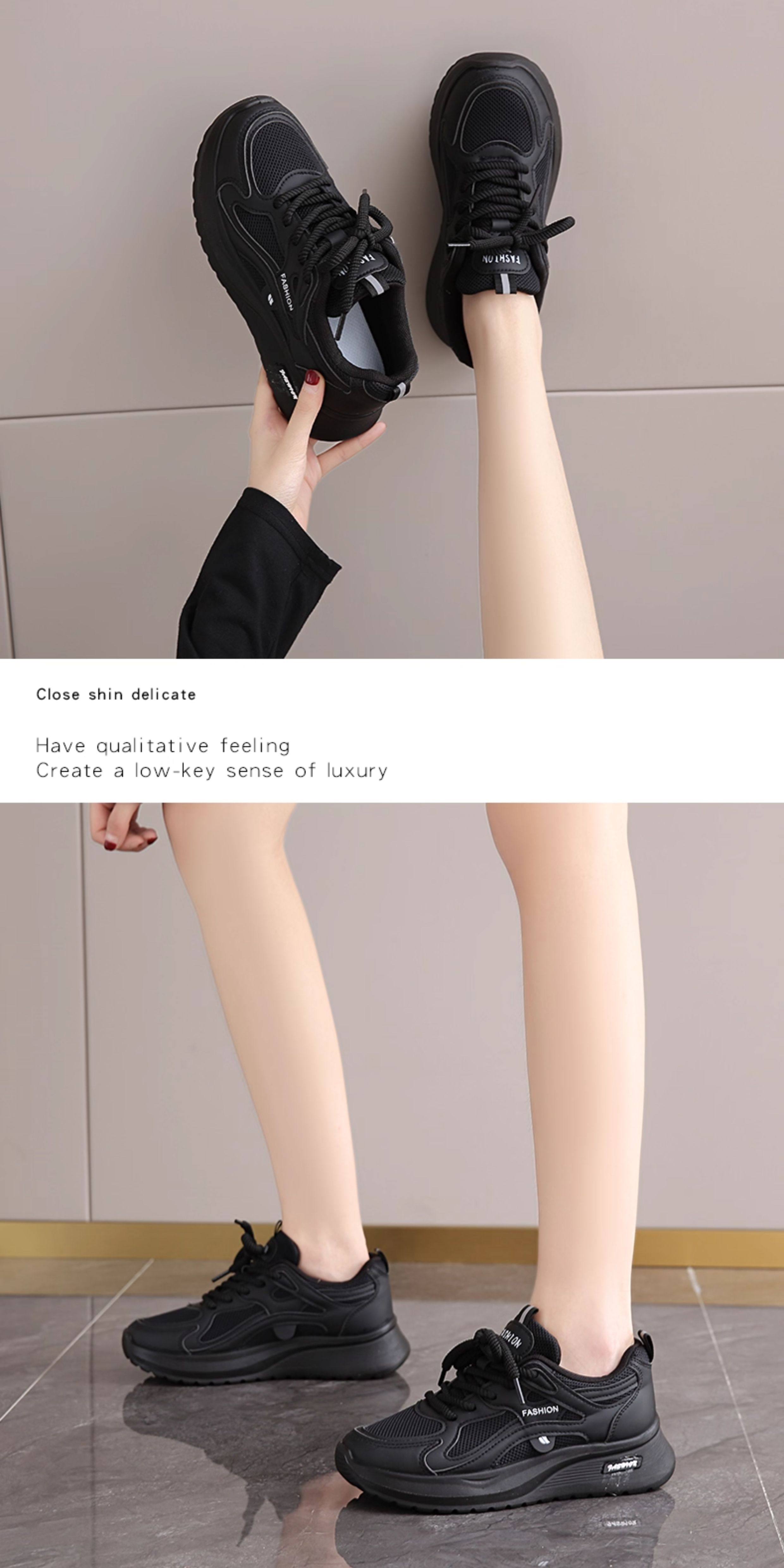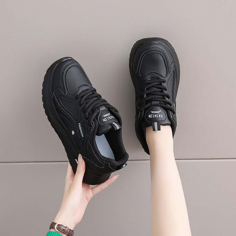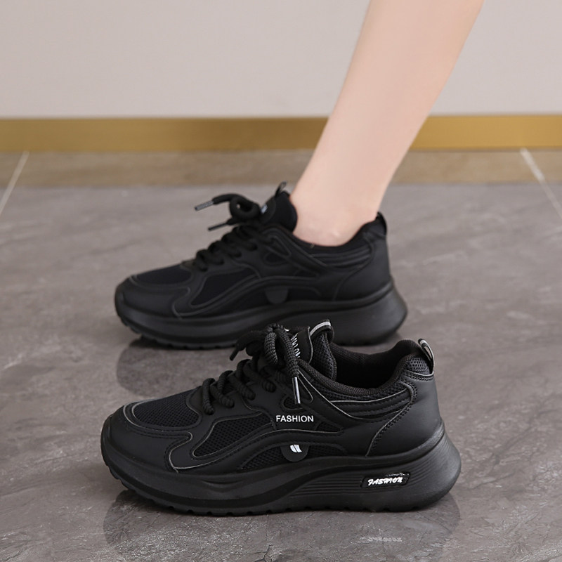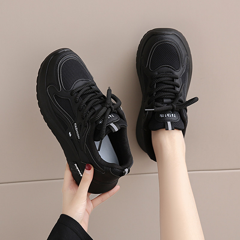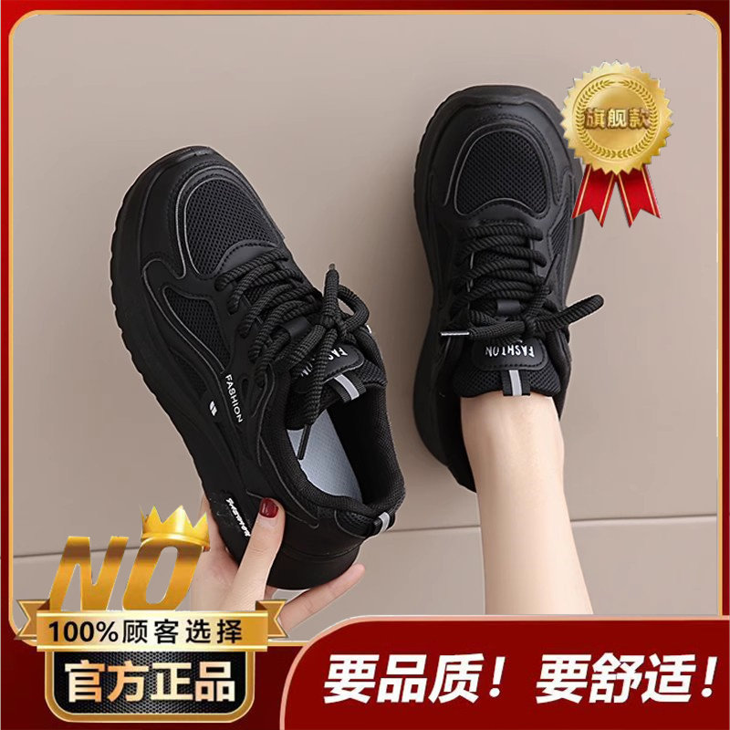黑色运动鞋女2026春秋新款网面工作百搭休闲鞋轻便软底防滑老爹鞋