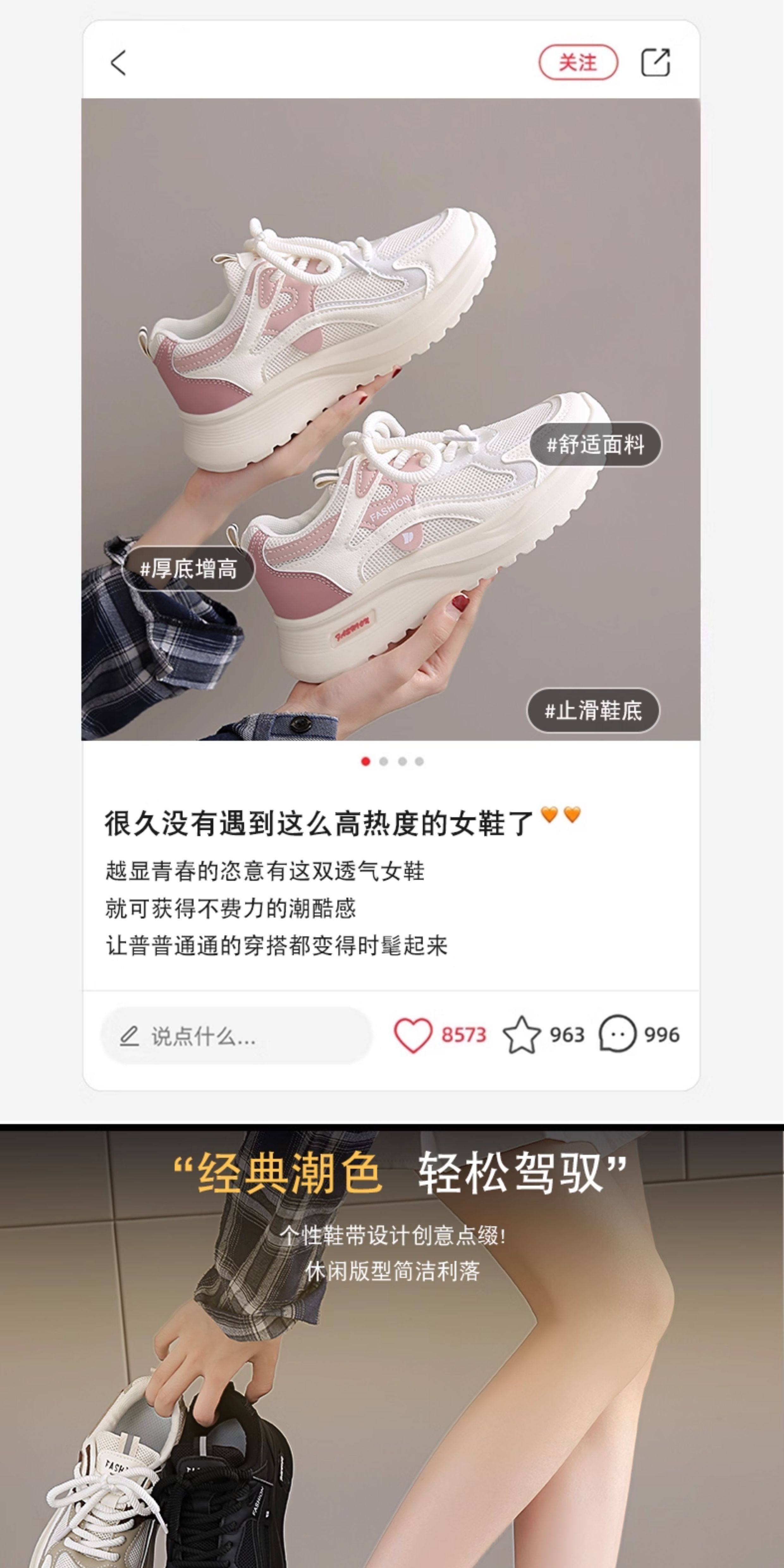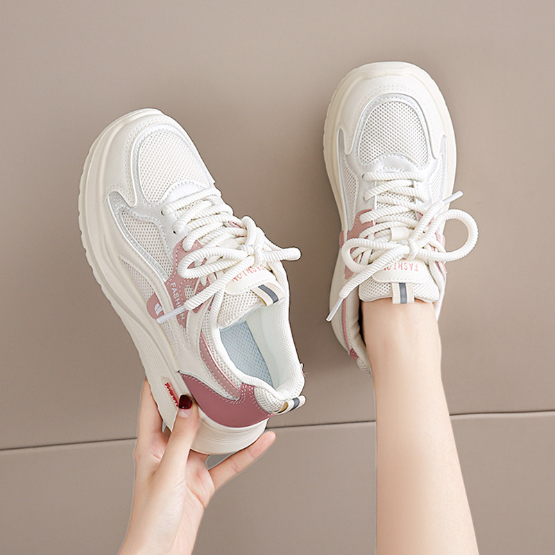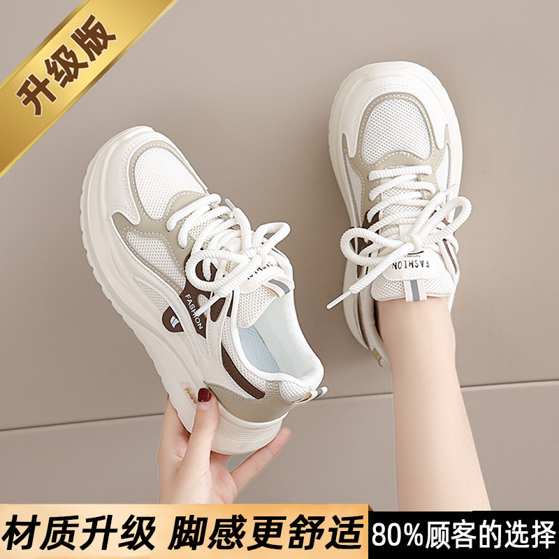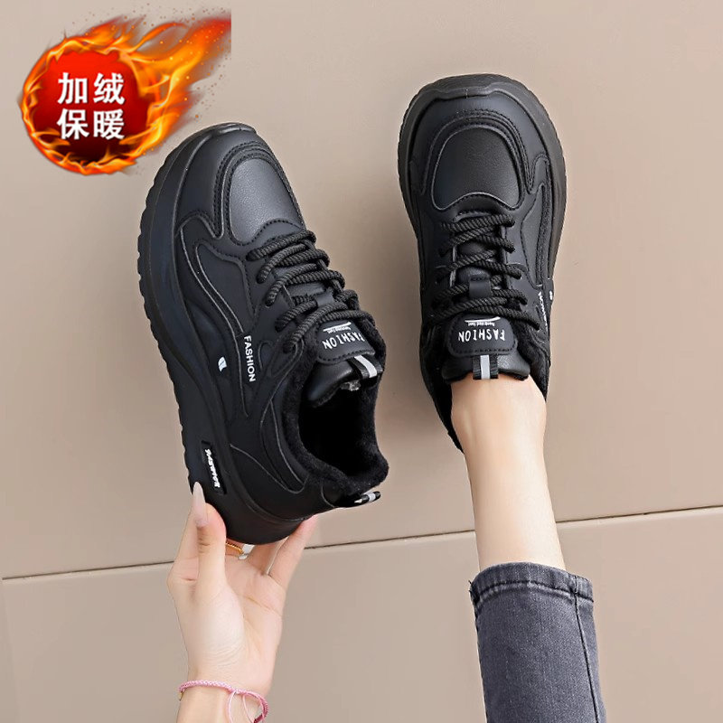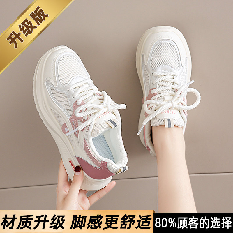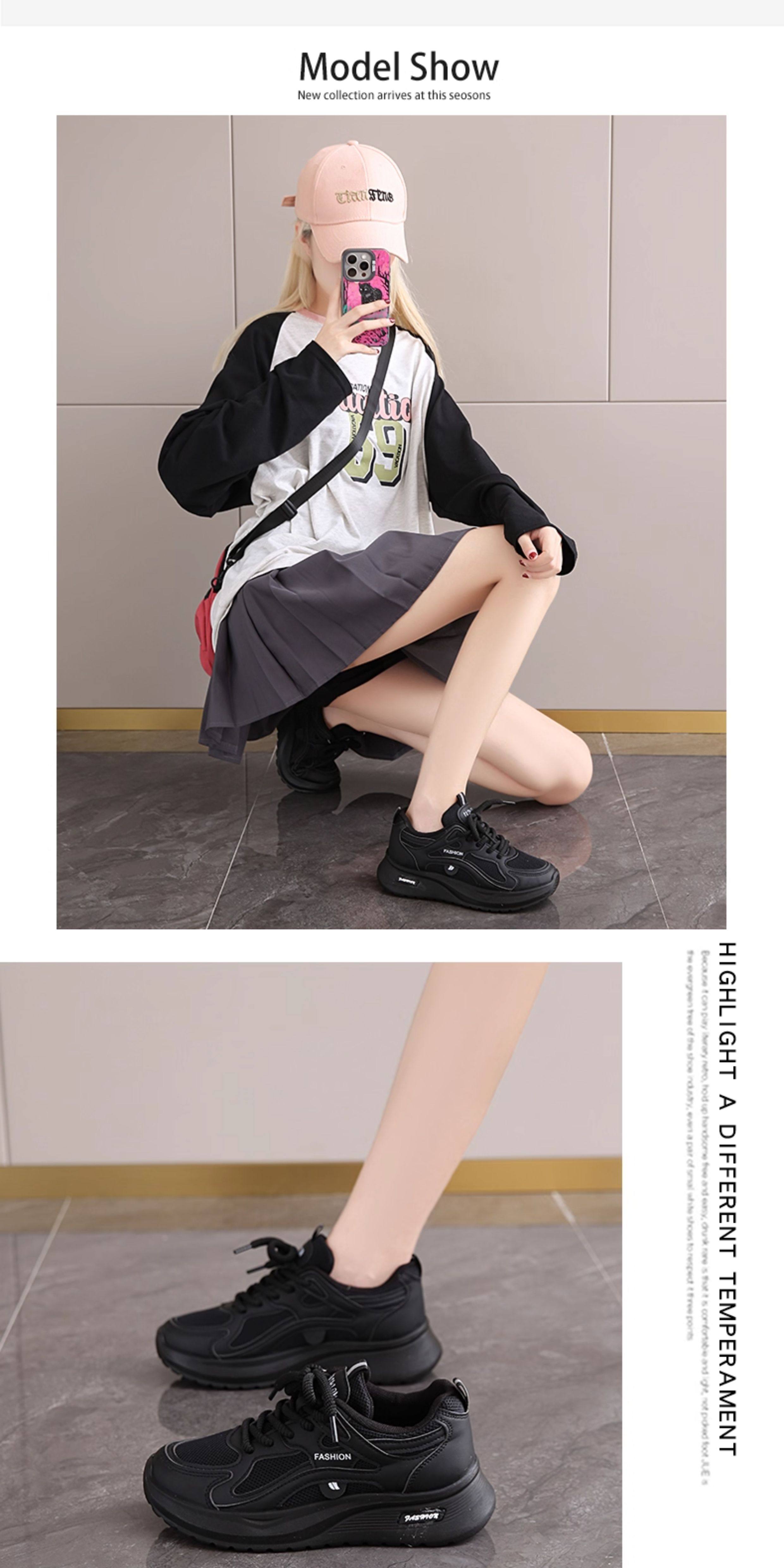 黑色运动鞋女2026春秋新款网面工作百搭休闲鞋轻便软底防滑老爹鞋