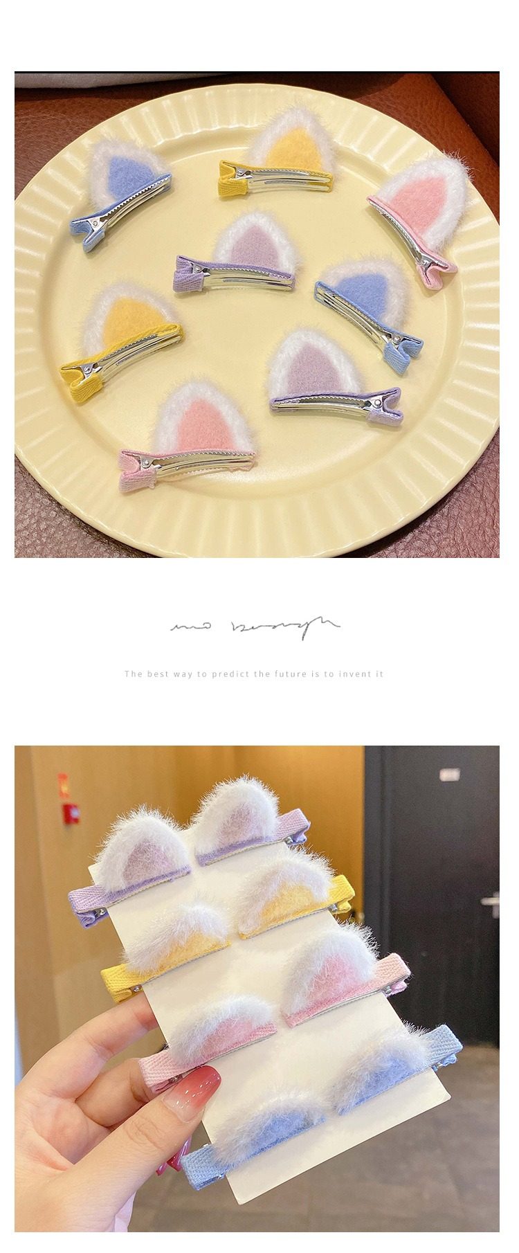 儿童发夹小女孩可爱毛绒兔耳朵对夹宝宝发卡女童刘海夹侧边夹发饰