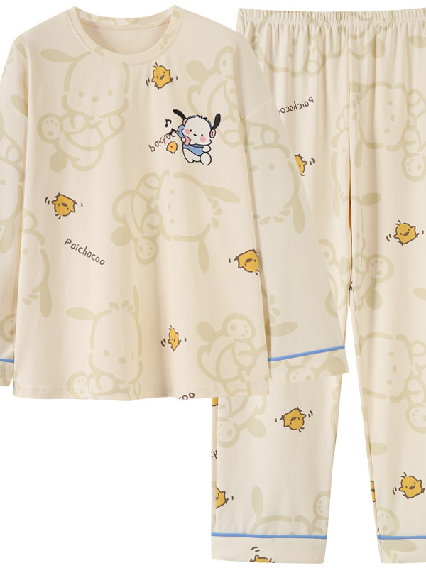 春秋季女士睡衣新款长袖长裤秋冬款少女卡通可外穿宽松家居服套装