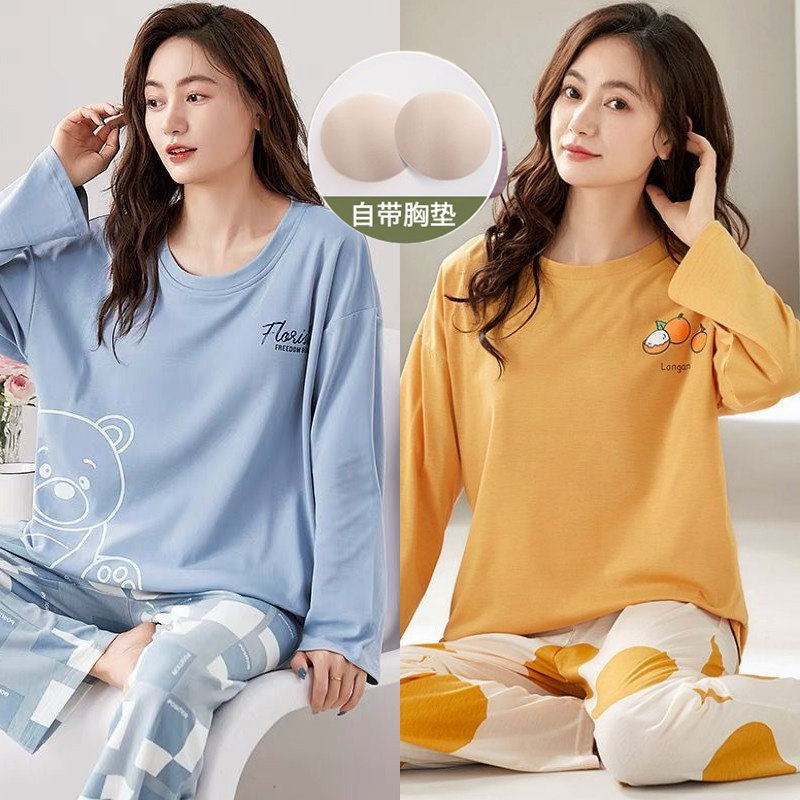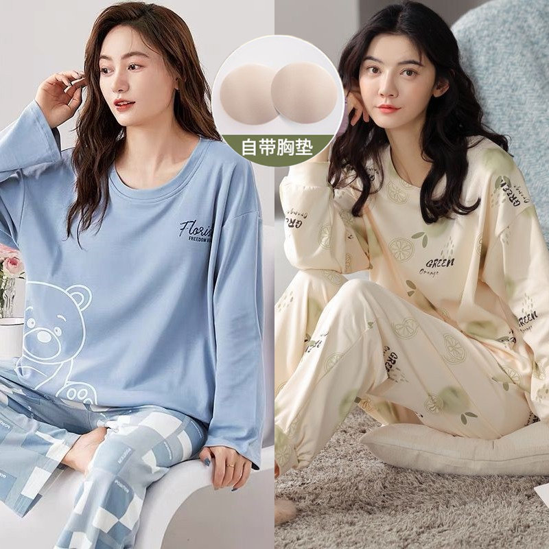 纯棉睡衣女春秋款带胸垫一体2025年新款秋季女士长袖可外穿家居服