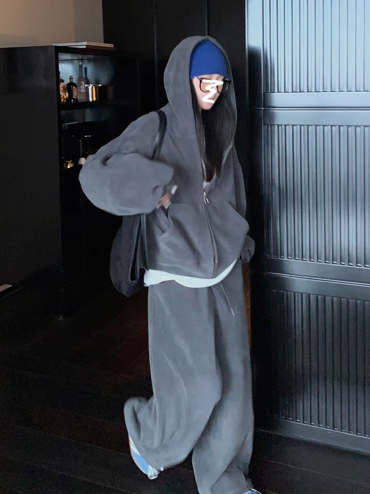 双面奥莉绒超厚卫衣套装女秋冬季慵懒风宽松阔腿裤休闲运动两件套