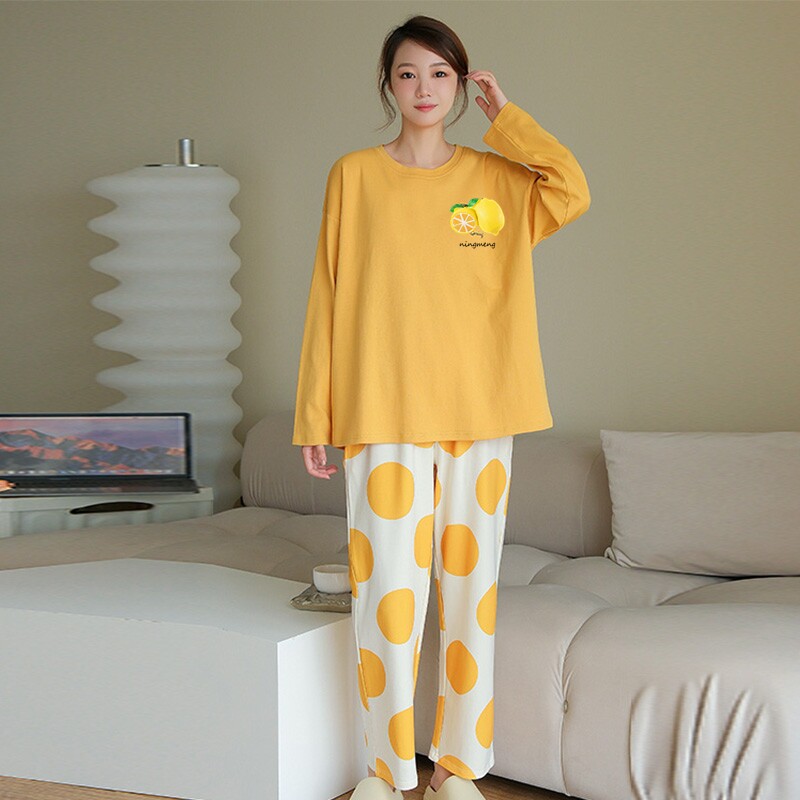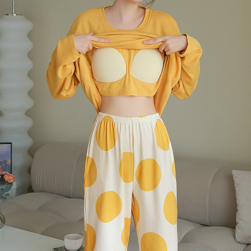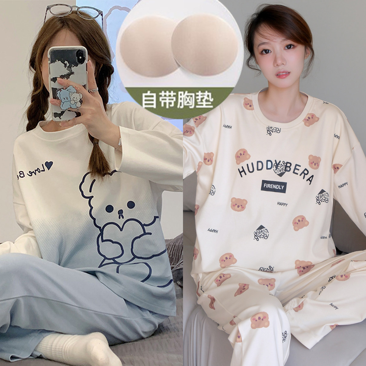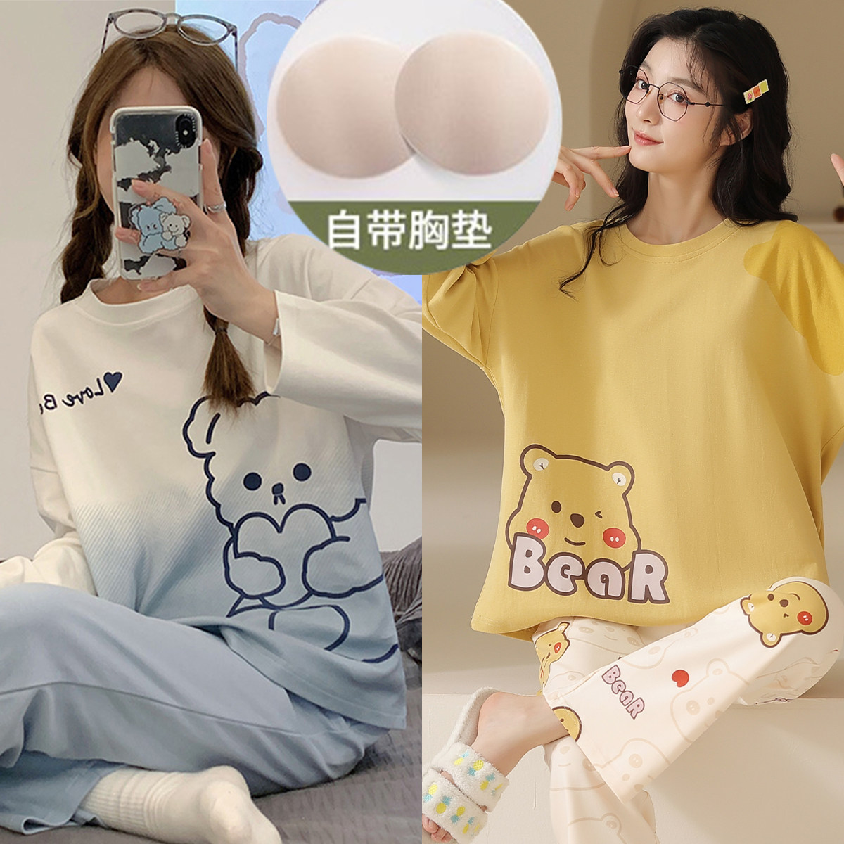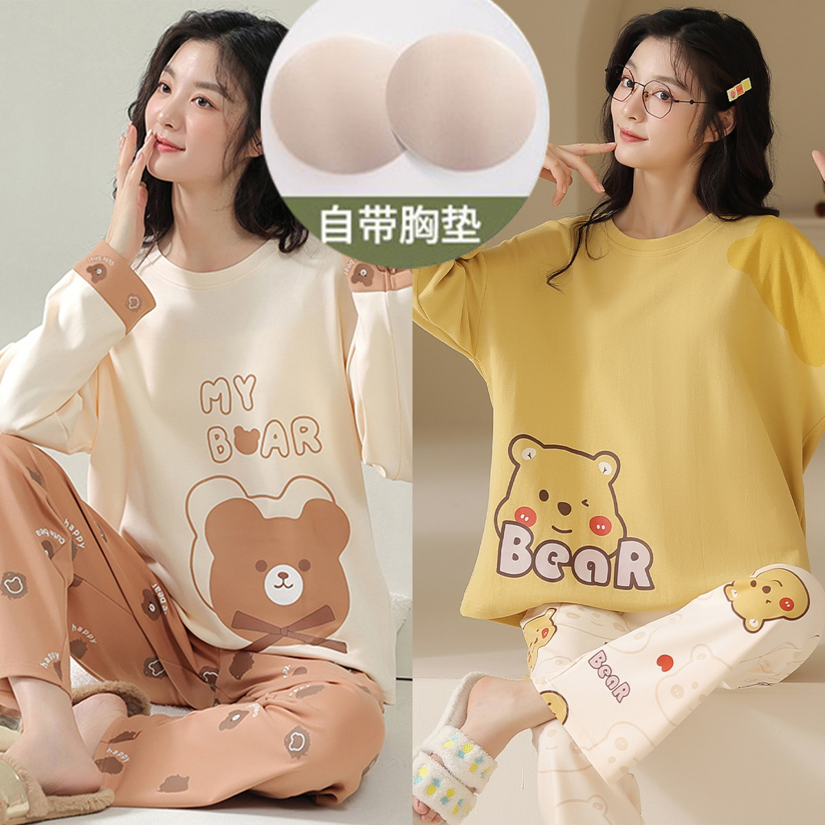 【买一送一】睡衣女春秋季长袖纯棉带胸垫高颜值家居服可外穿套装