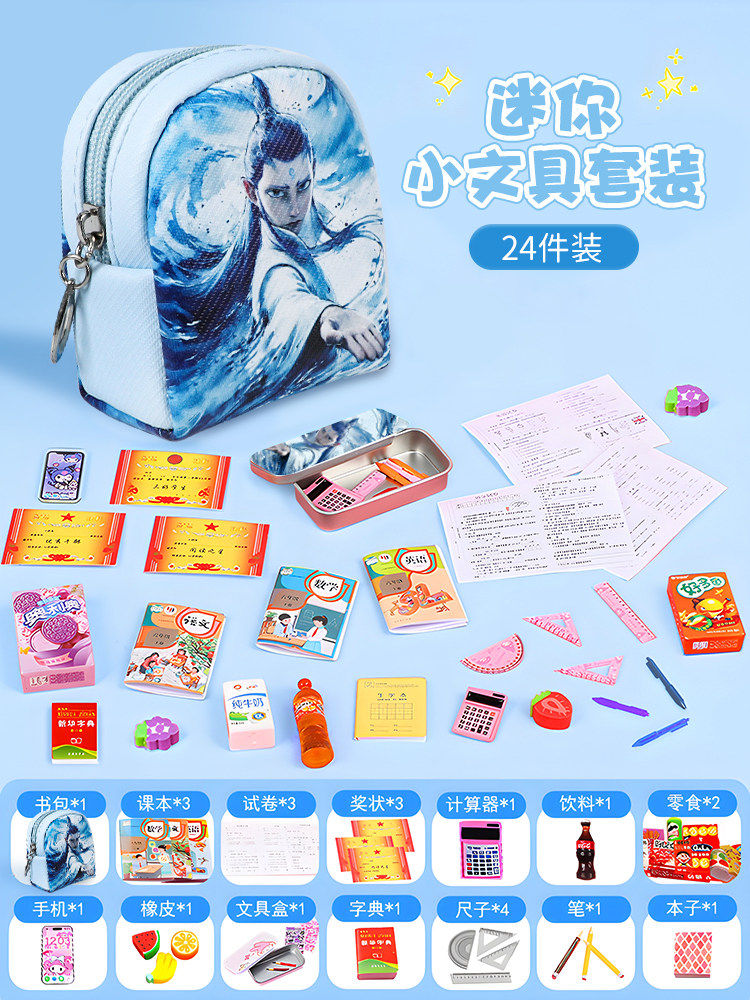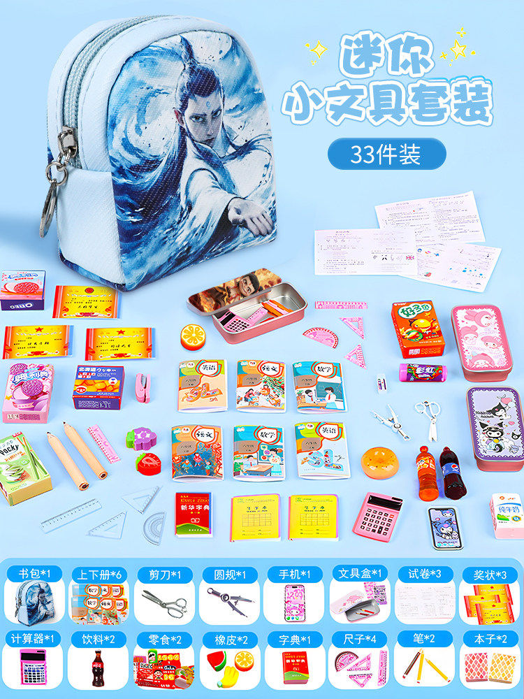 迷你小书包女孩子2025新款小女童生日礼物全套小学生书本微缩玩具