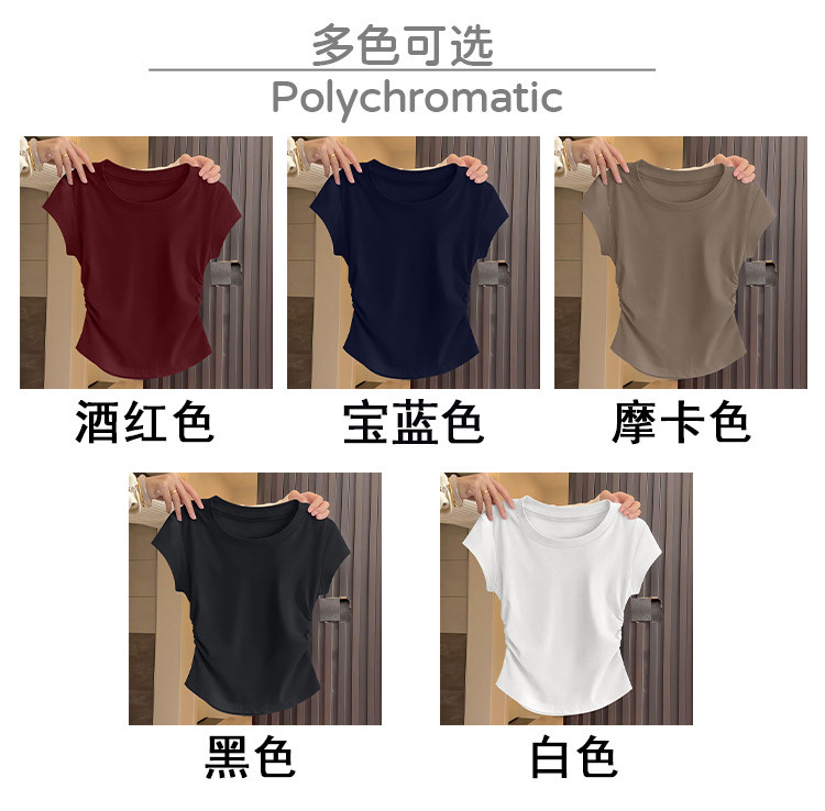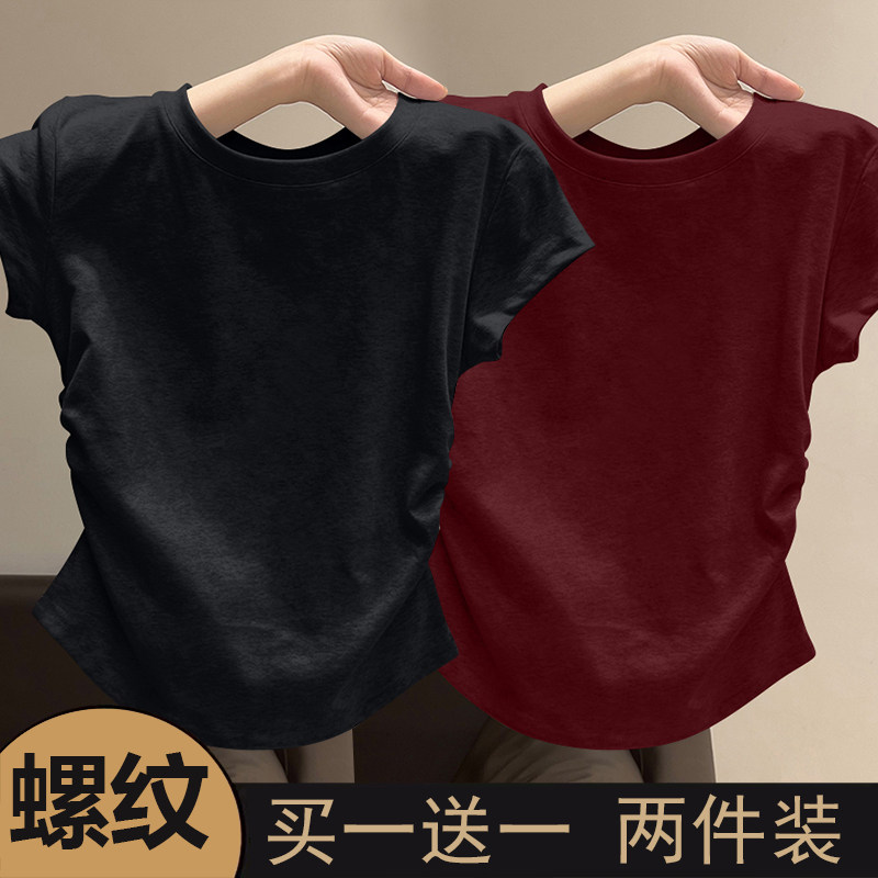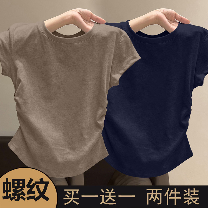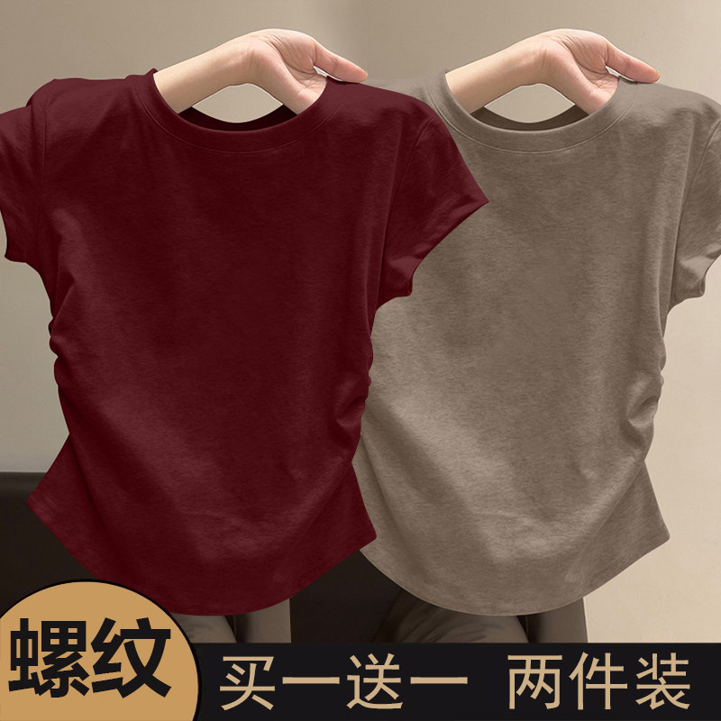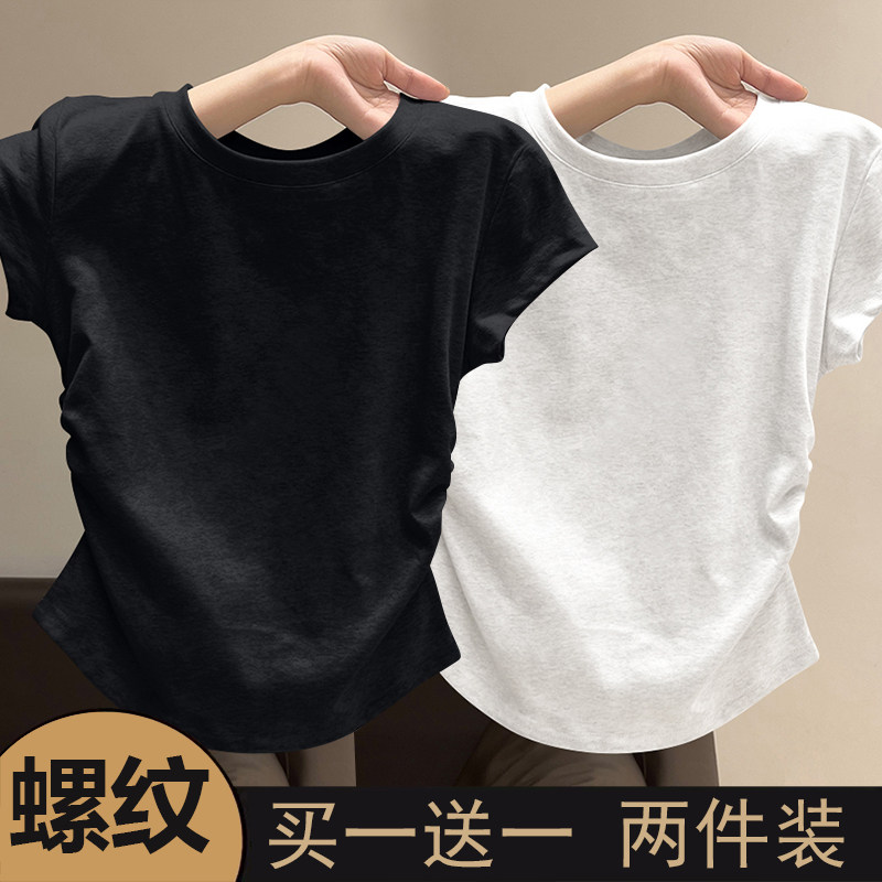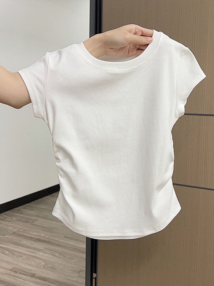 螺纹短袖t恤女2025新款夏季大方品质收腰不规则单穿美体百搭上衣