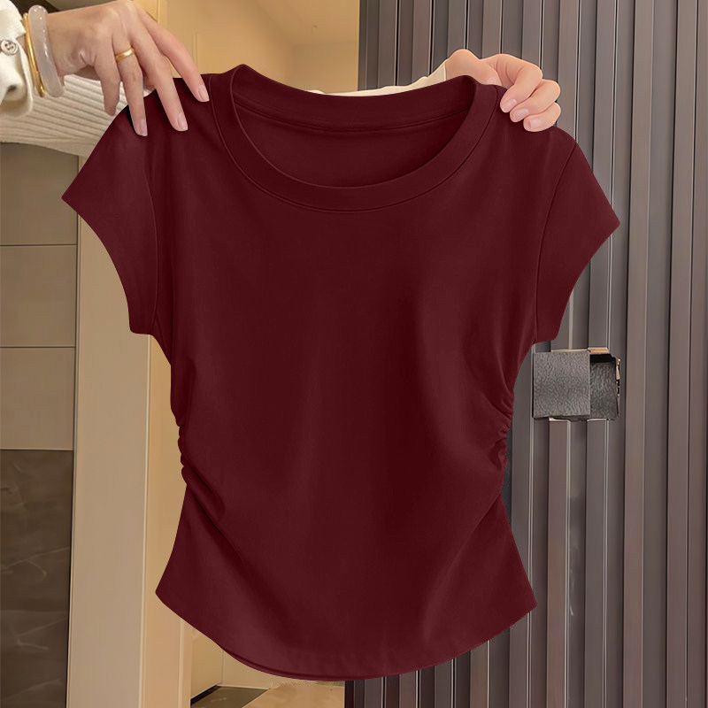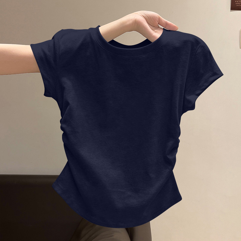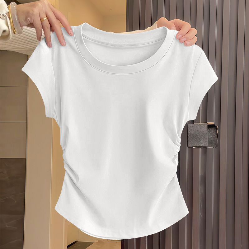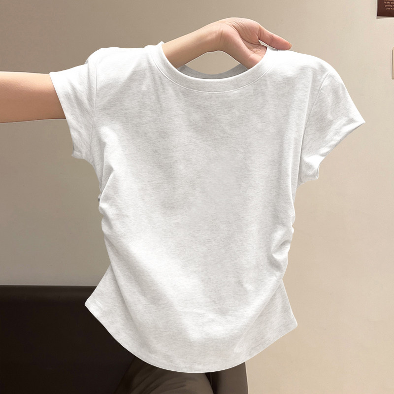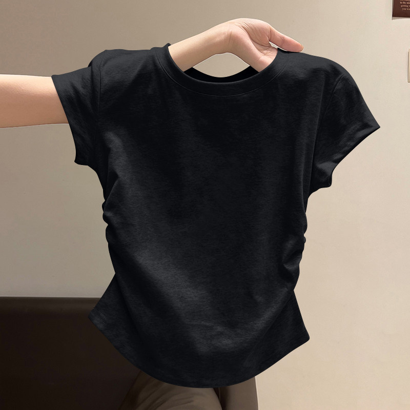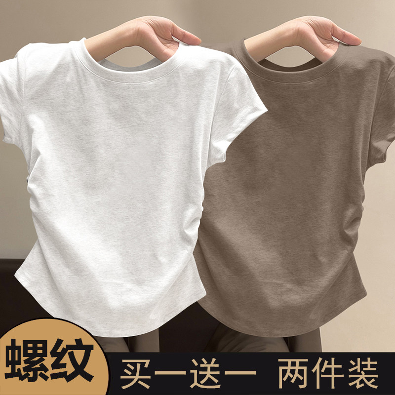 螺纹短袖t恤女2025新款夏季大方品质收腰不规则单穿美体百搭上衣