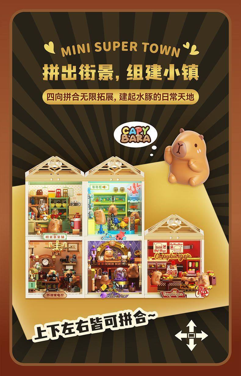 佳奇积木卡皮巴拉超级小镇微缩场景吧唧diy小屋灯光女孩生日礼物
