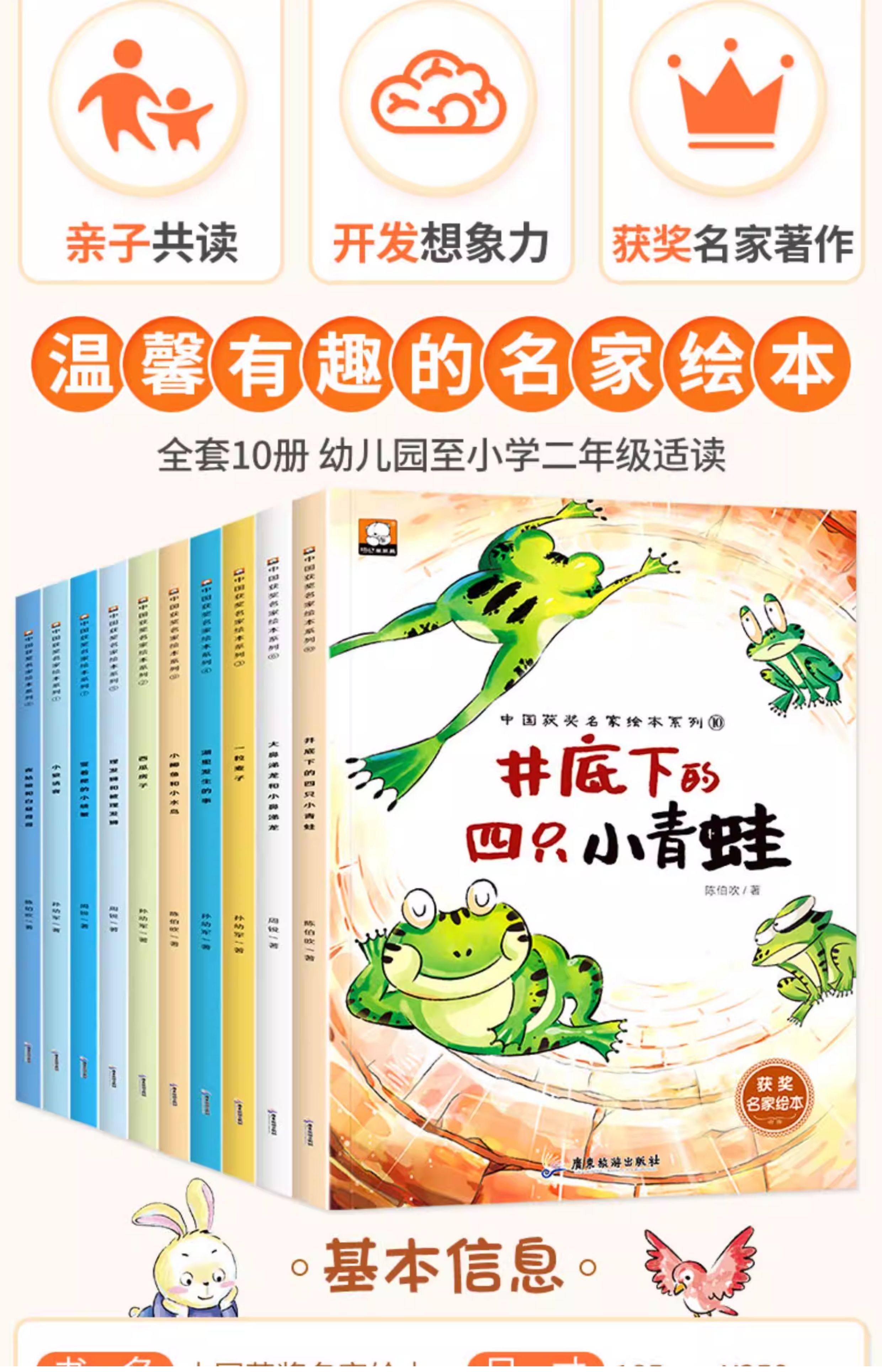 全10册中国获奖名家绘本井底下的四只小青蛙一粒麦子夜姑娘和白昼哥哥西瓜房子儿童绘本幼儿园专用3到6岁故事书正版