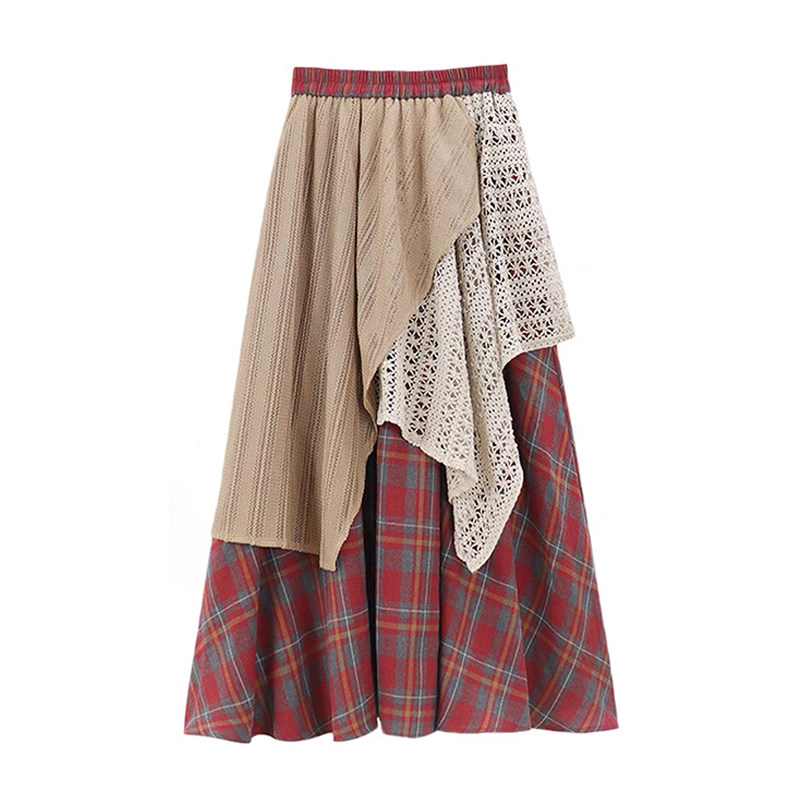 废土风不规则格子半身裙女装早秋川西新疆旅游高腰蕾丝拼接长裙子