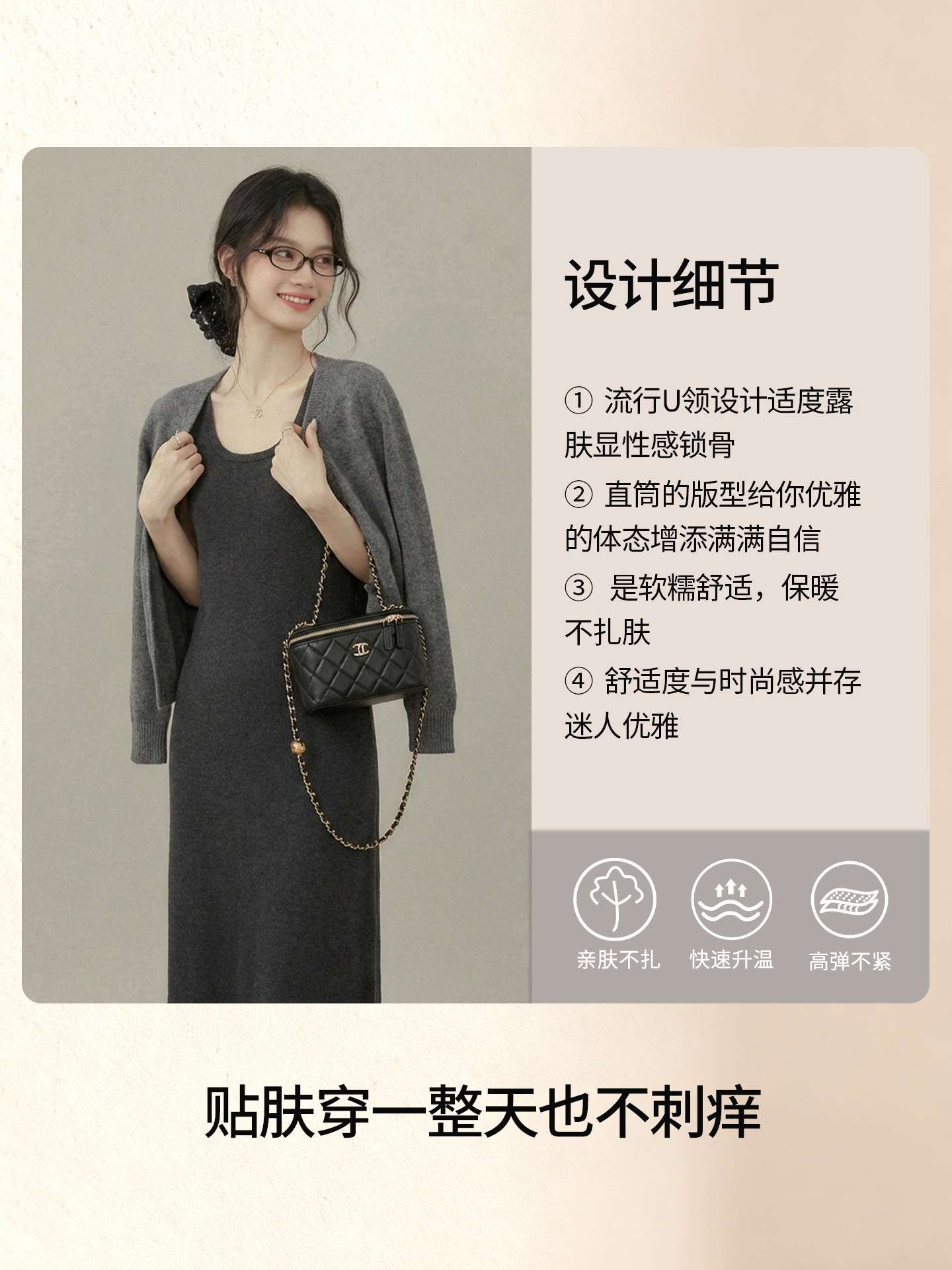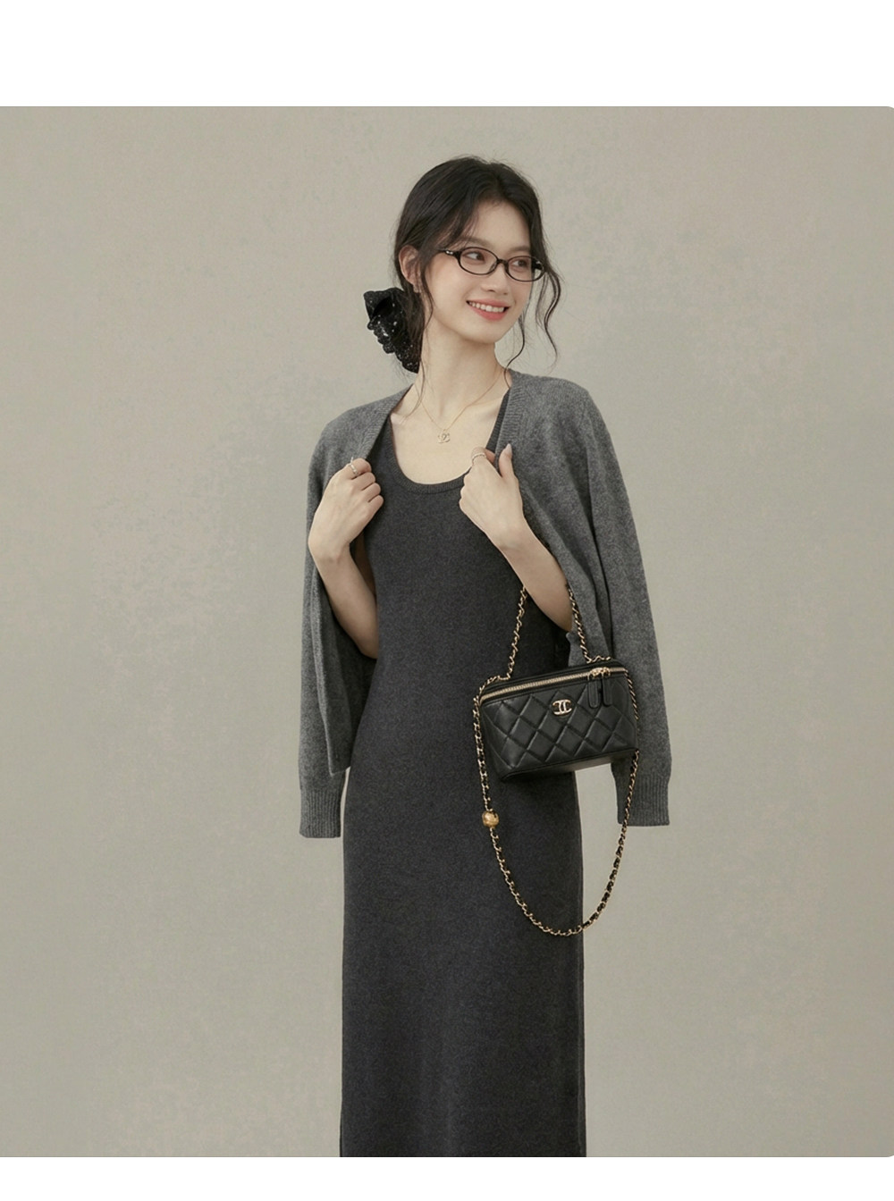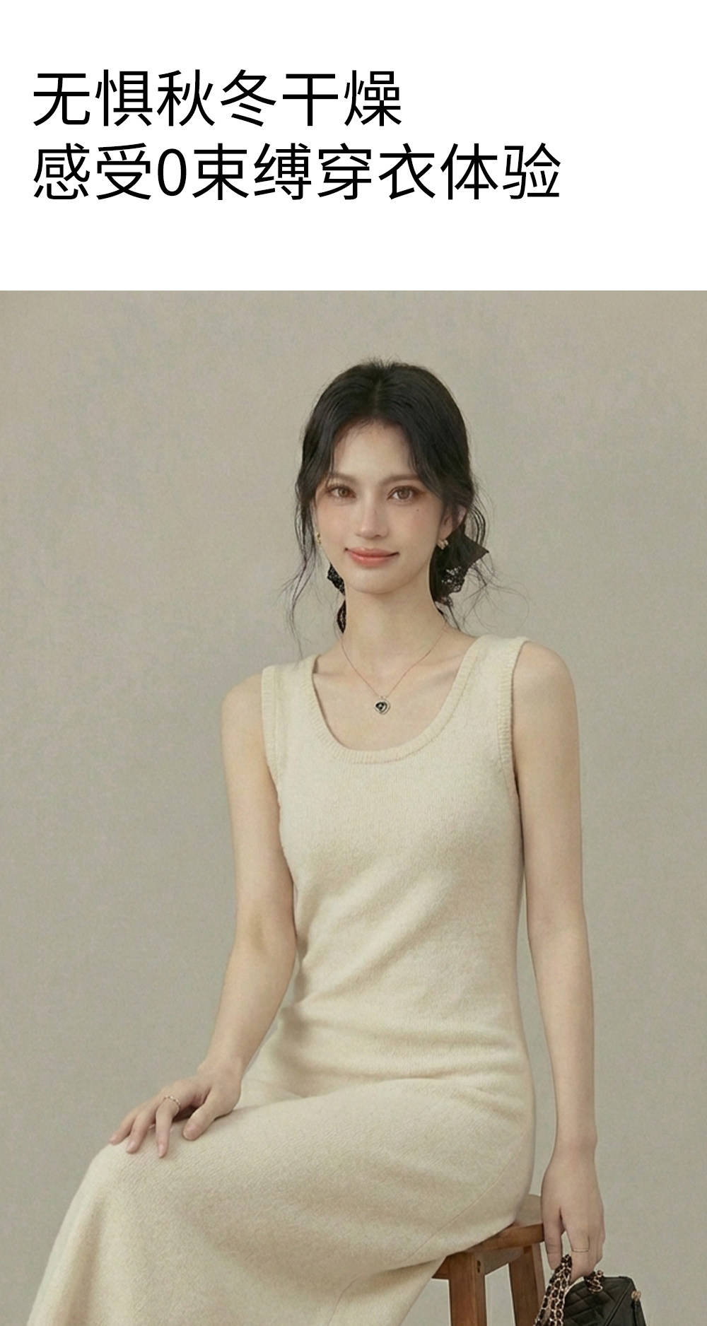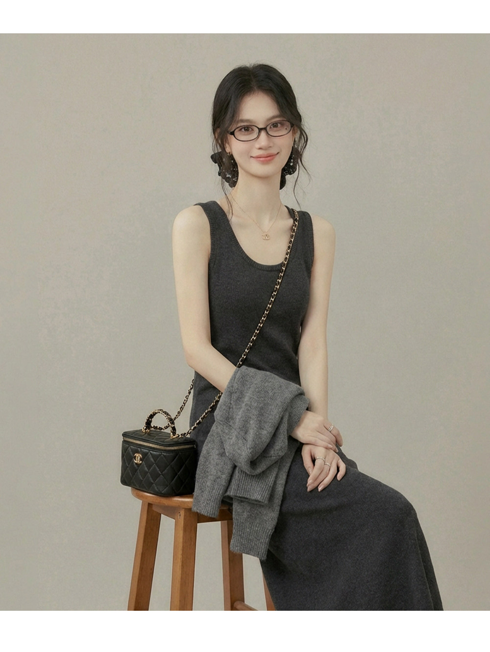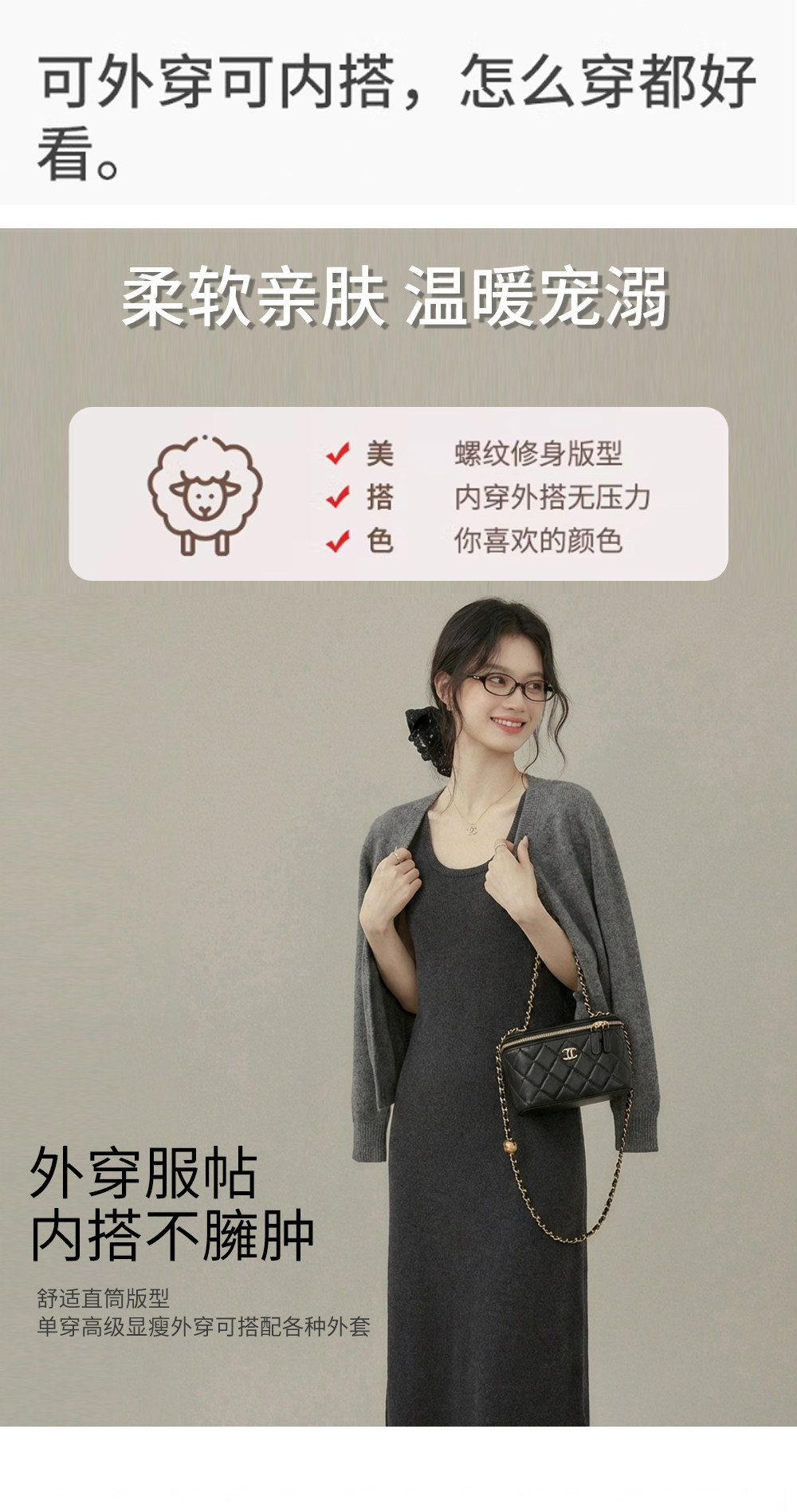 猫人打底针织连衣裙女秋冬长款背心裙灰色直筒宽松内搭吊带裙长裙