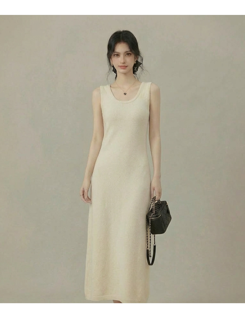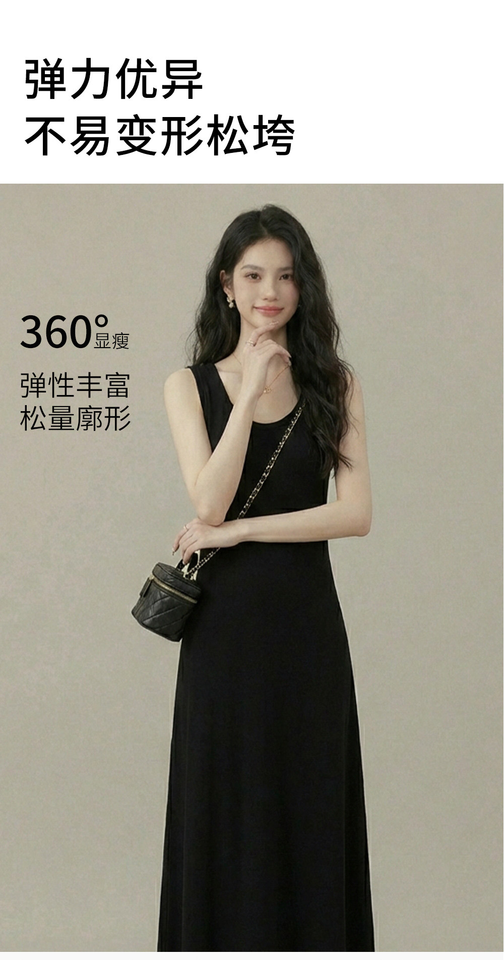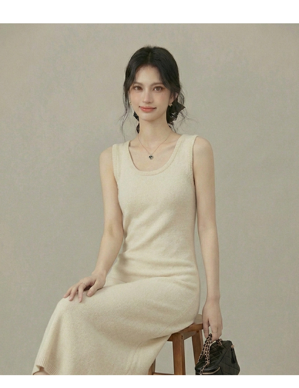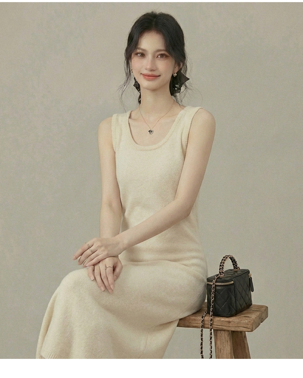 猫人打底针织连衣裙女秋冬长款背心裙灰色直筒宽松内搭吊带裙长裙