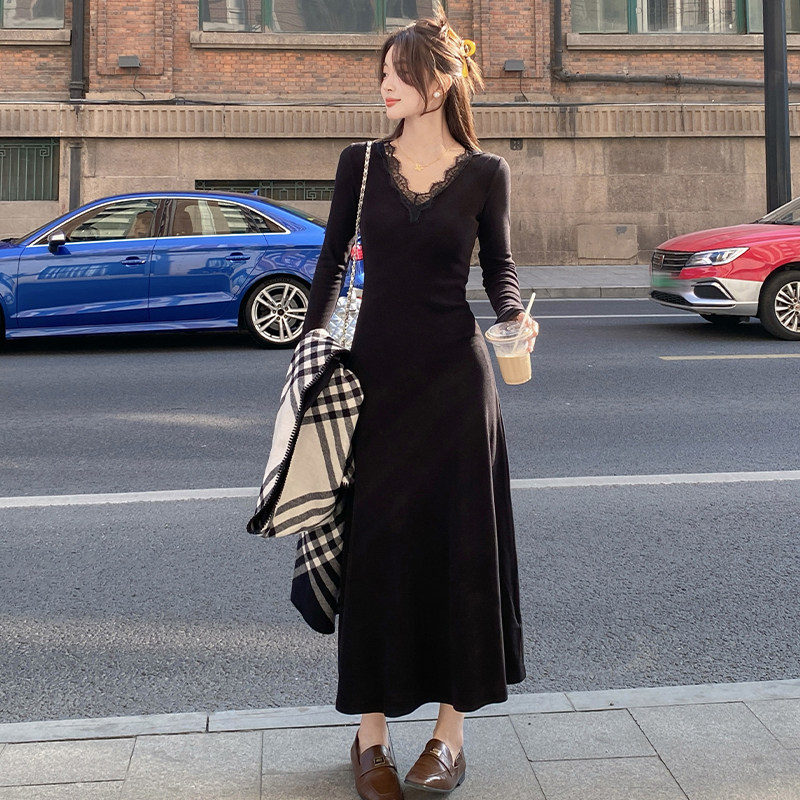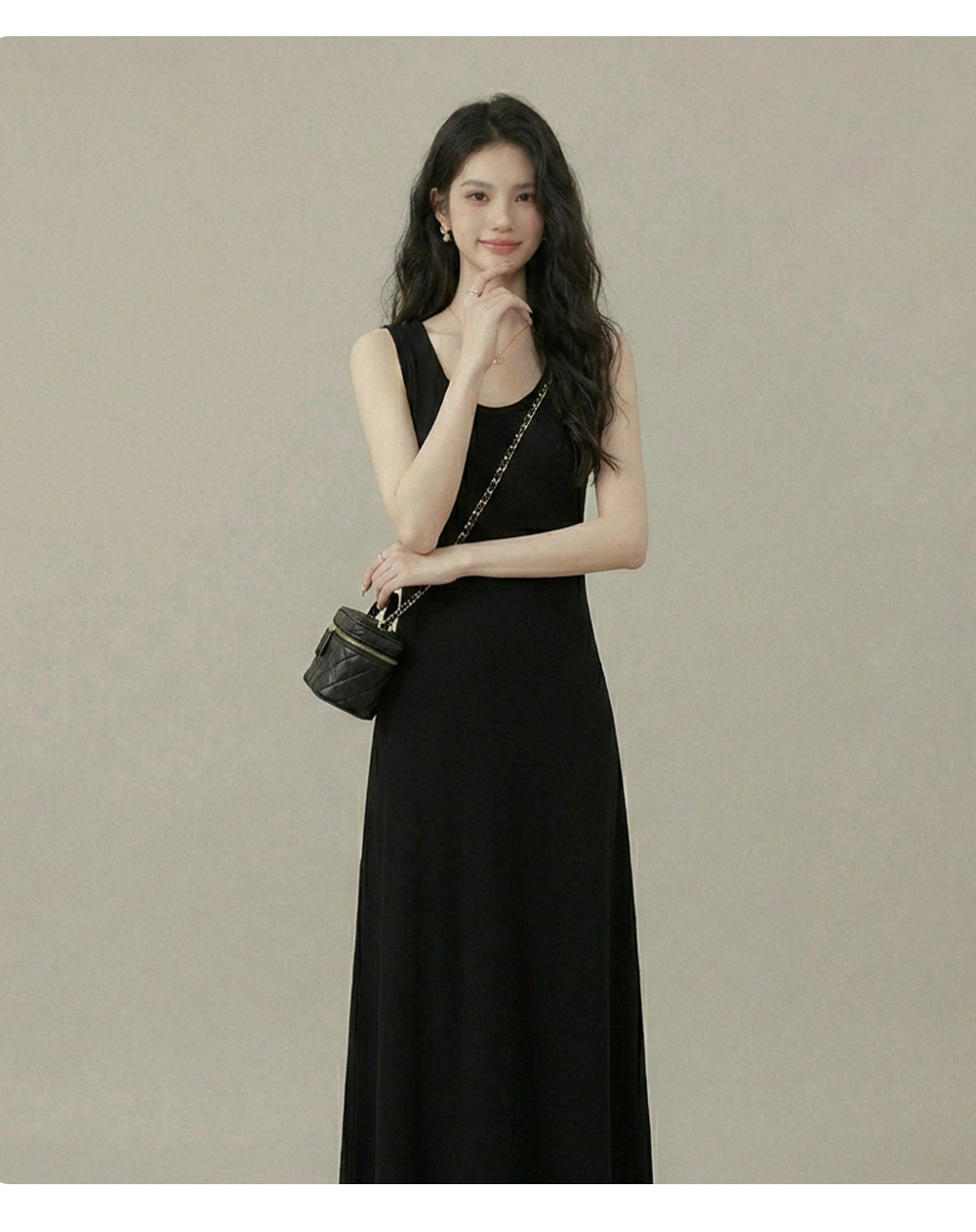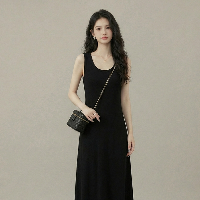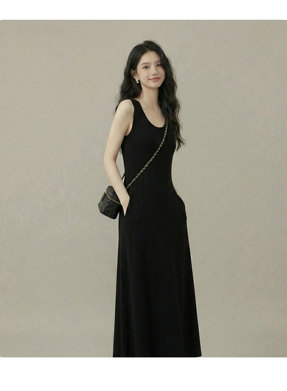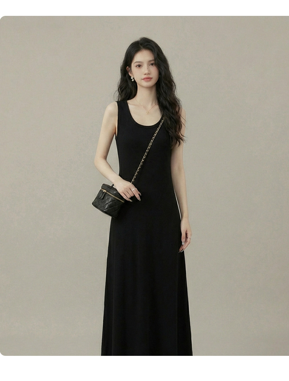 猫人打底针织连衣裙女秋冬长款背心裙灰色直筒宽松内搭吊带裙长裙