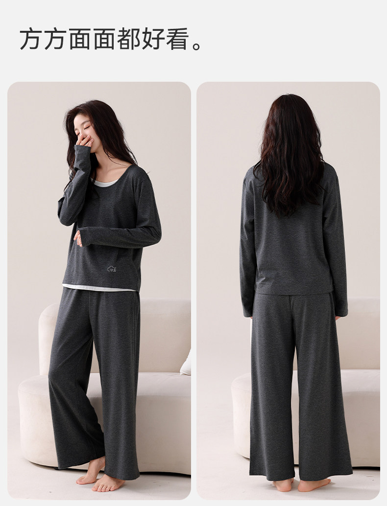 猫人睡衣秋女款2025新款带胸垫女士可外穿长袖秋冬简约家居服秋季