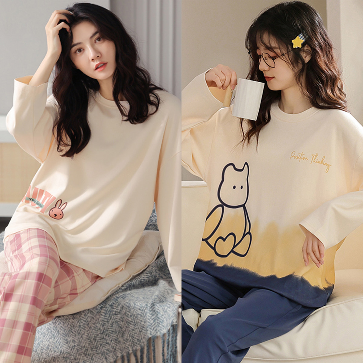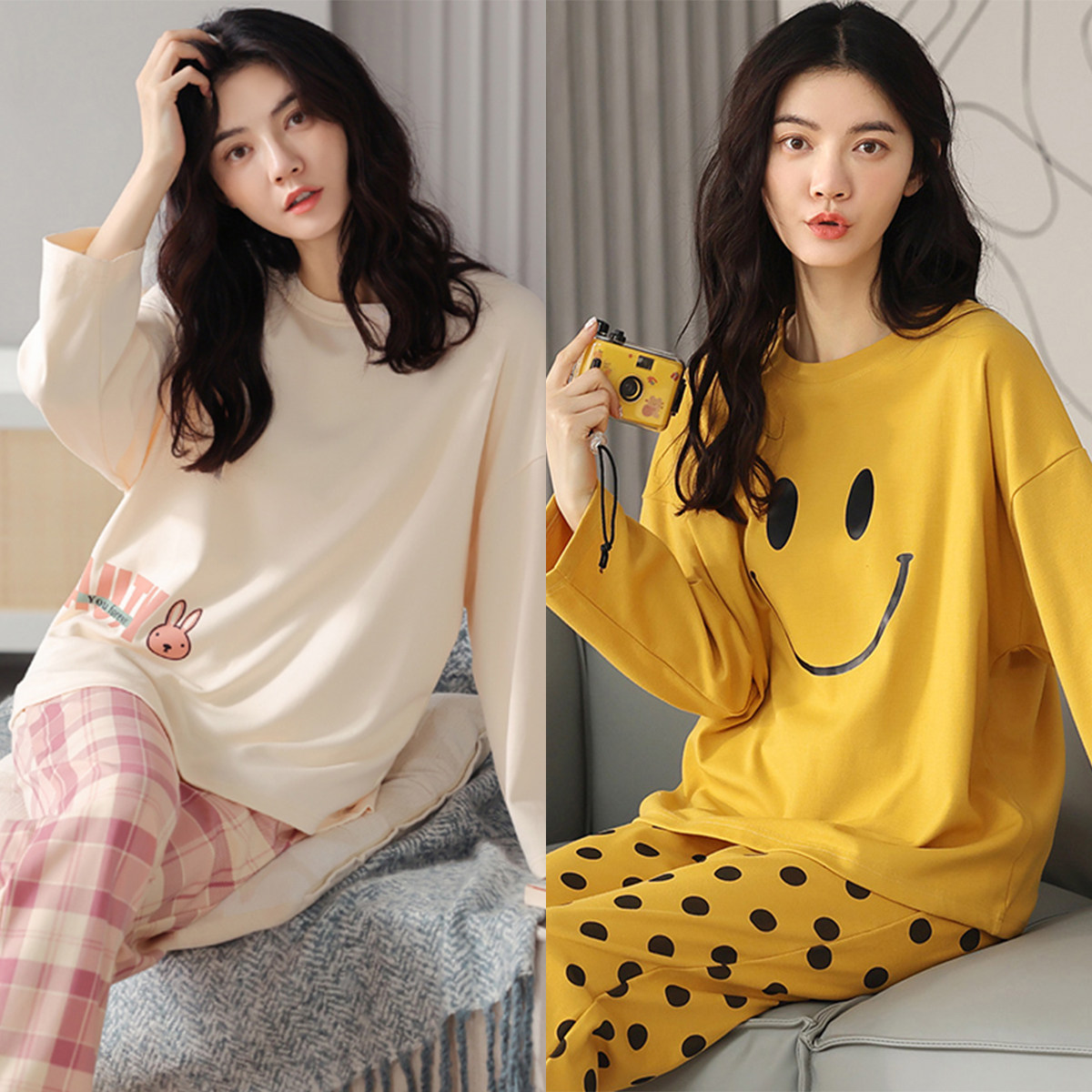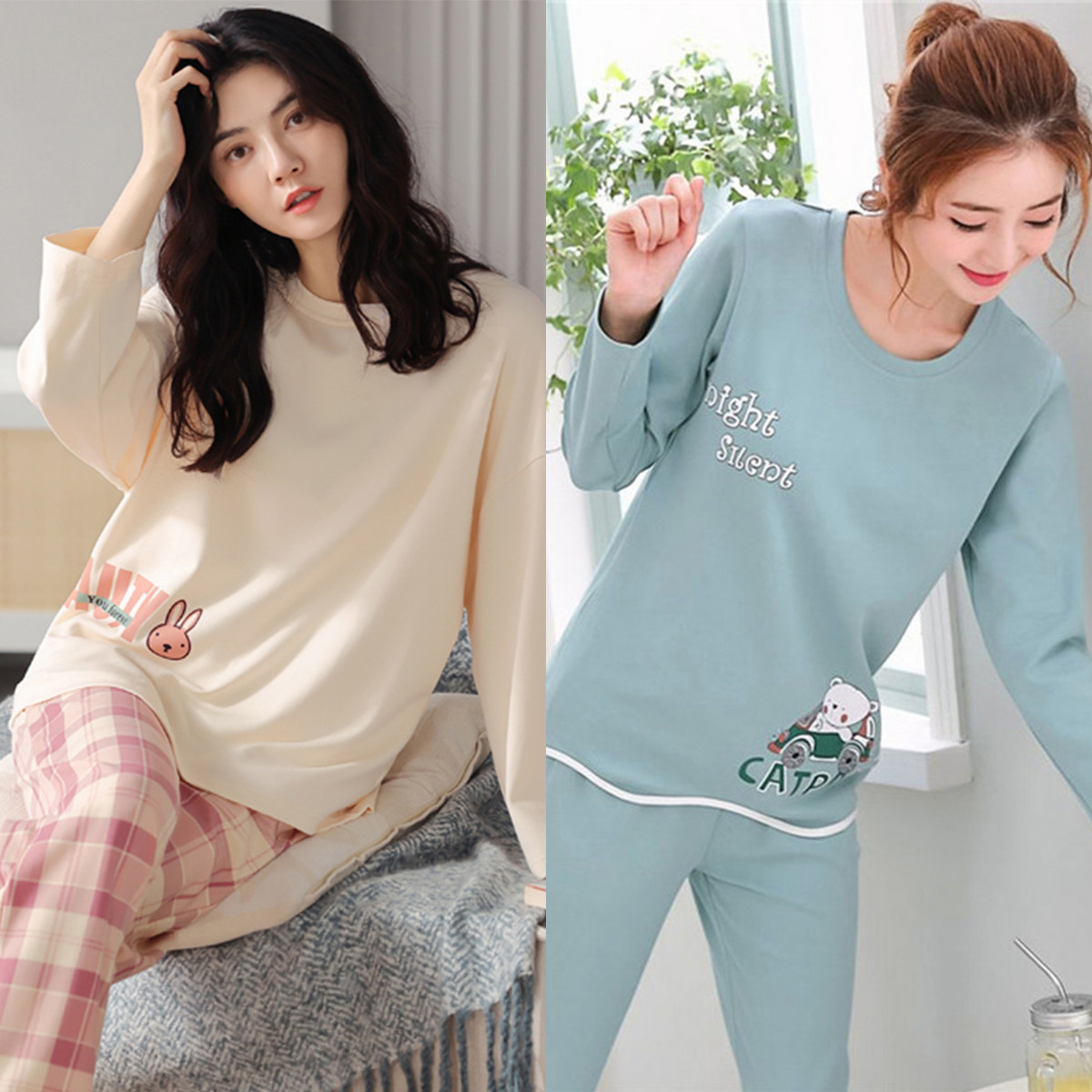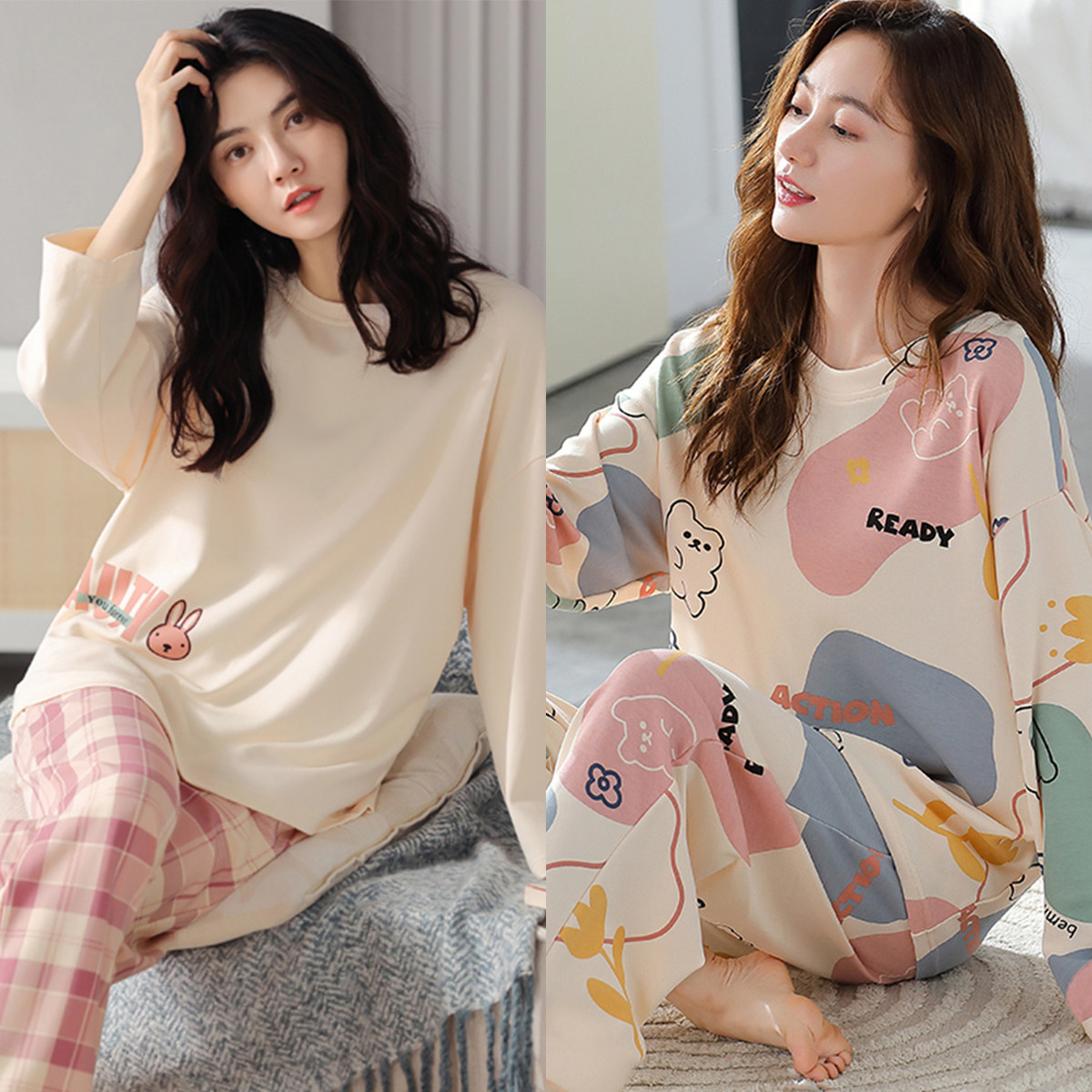 睡衣女春秋季纯棉韩版长袖长裤卡通套装可外穿夏秋冬款大码家居服