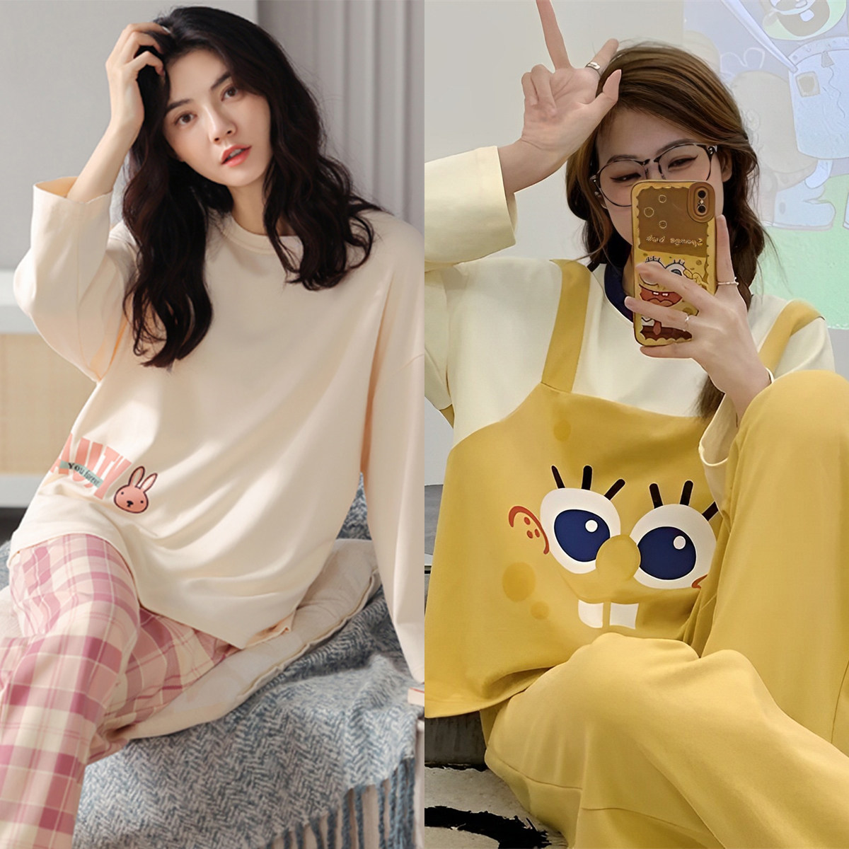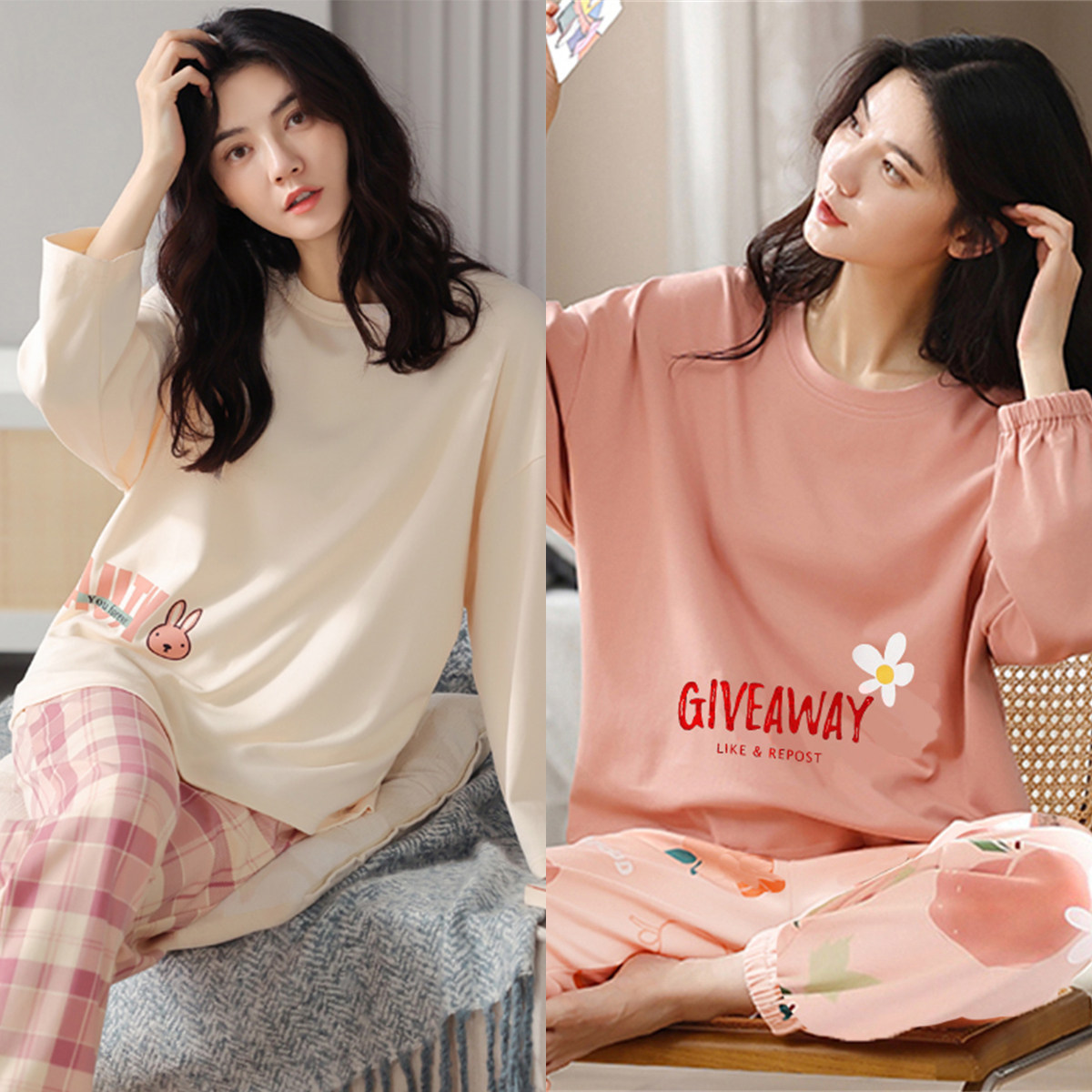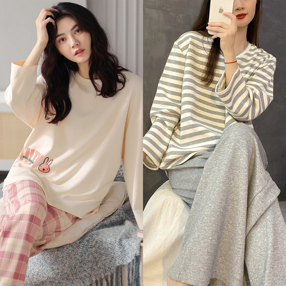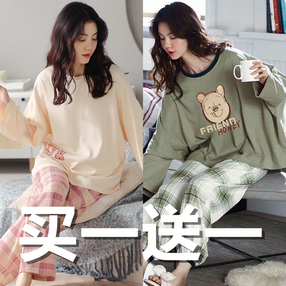 睡衣女春秋季纯棉韩版长袖长裤卡通套装可外穿夏秋冬款大码家居服