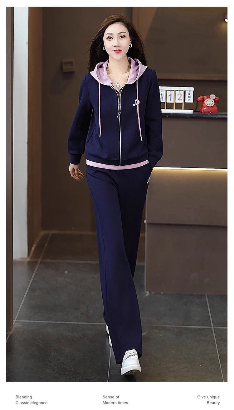 时尚运动套装女士春秋新款洋气减龄宽松假两件连帽休闲卫衣两件套