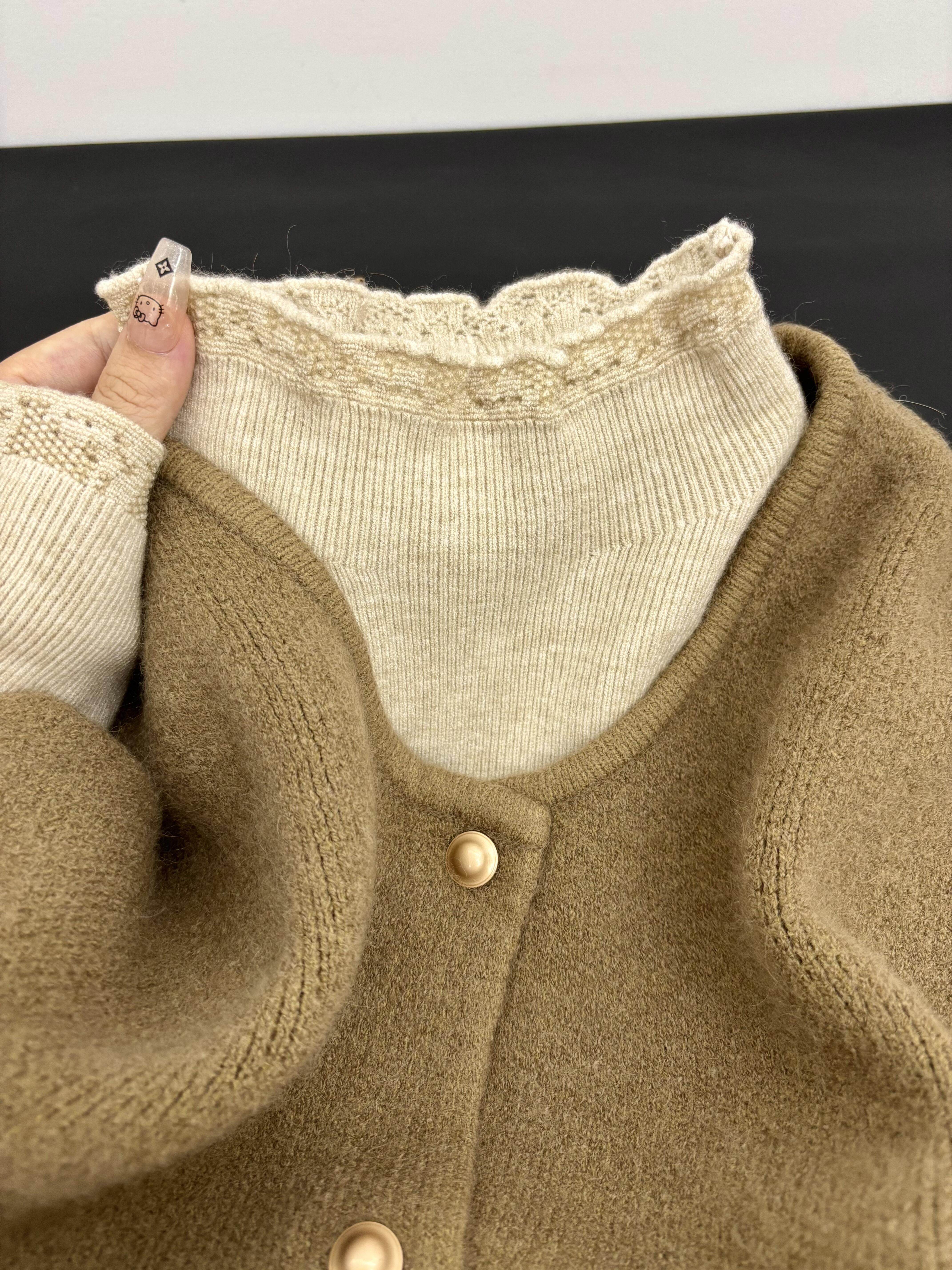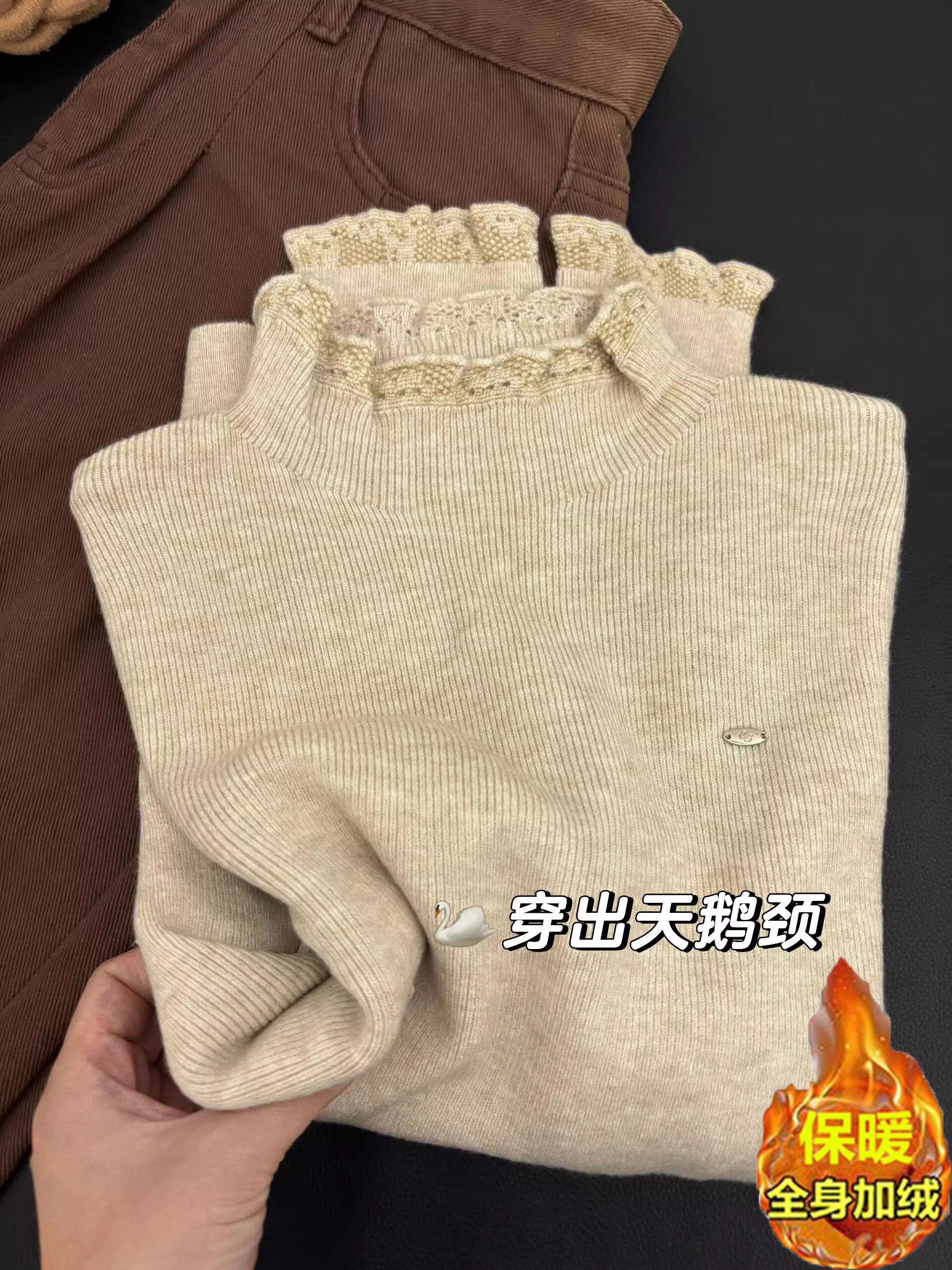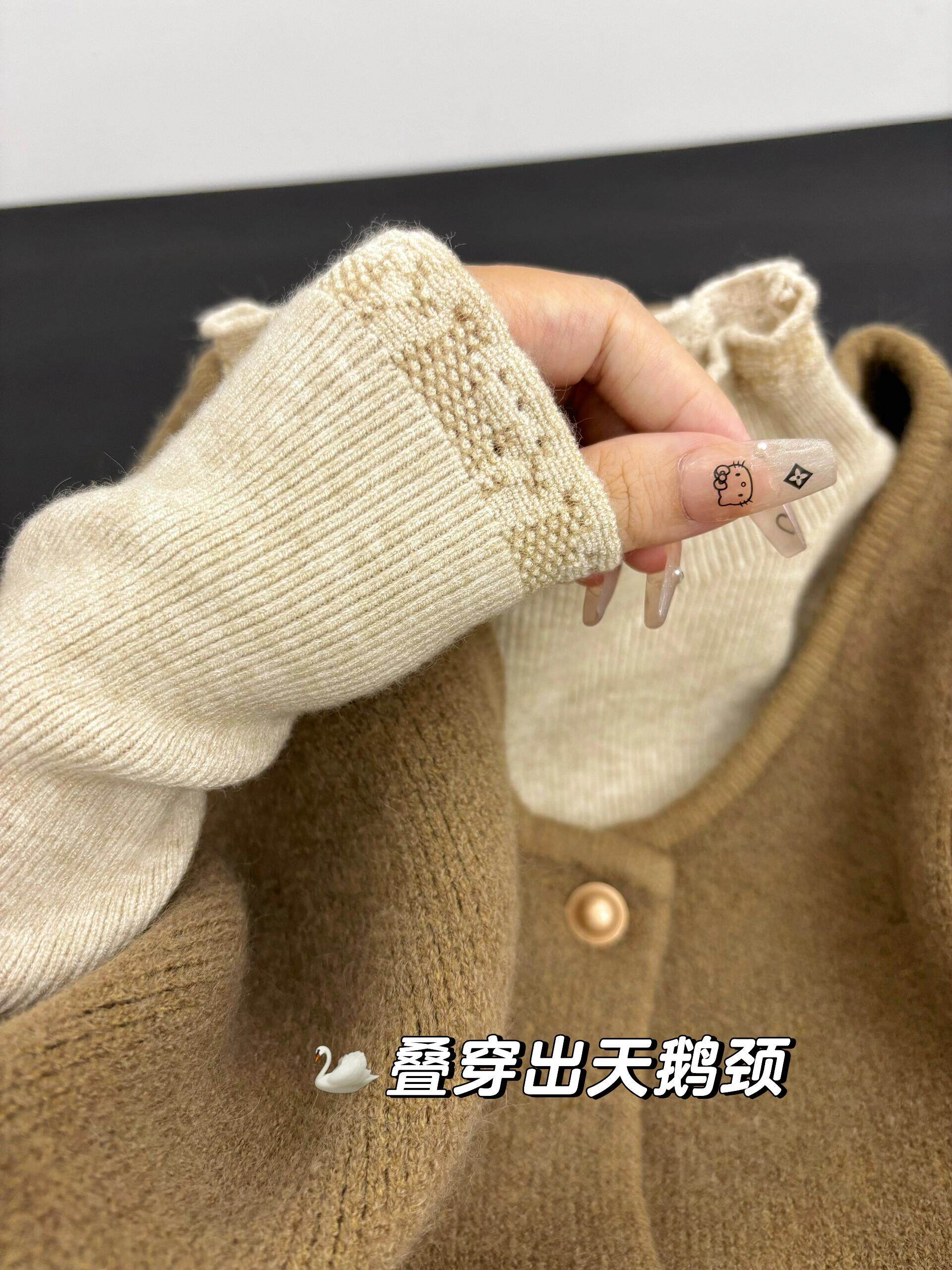韩系绝美半高领木耳边针织衫女秋冬新款洋气叠穿马甲软糯毛衣套装